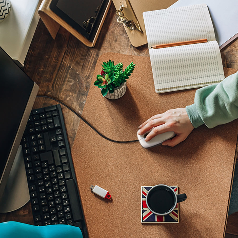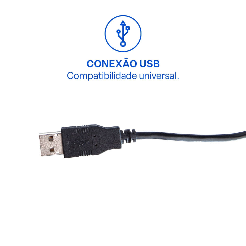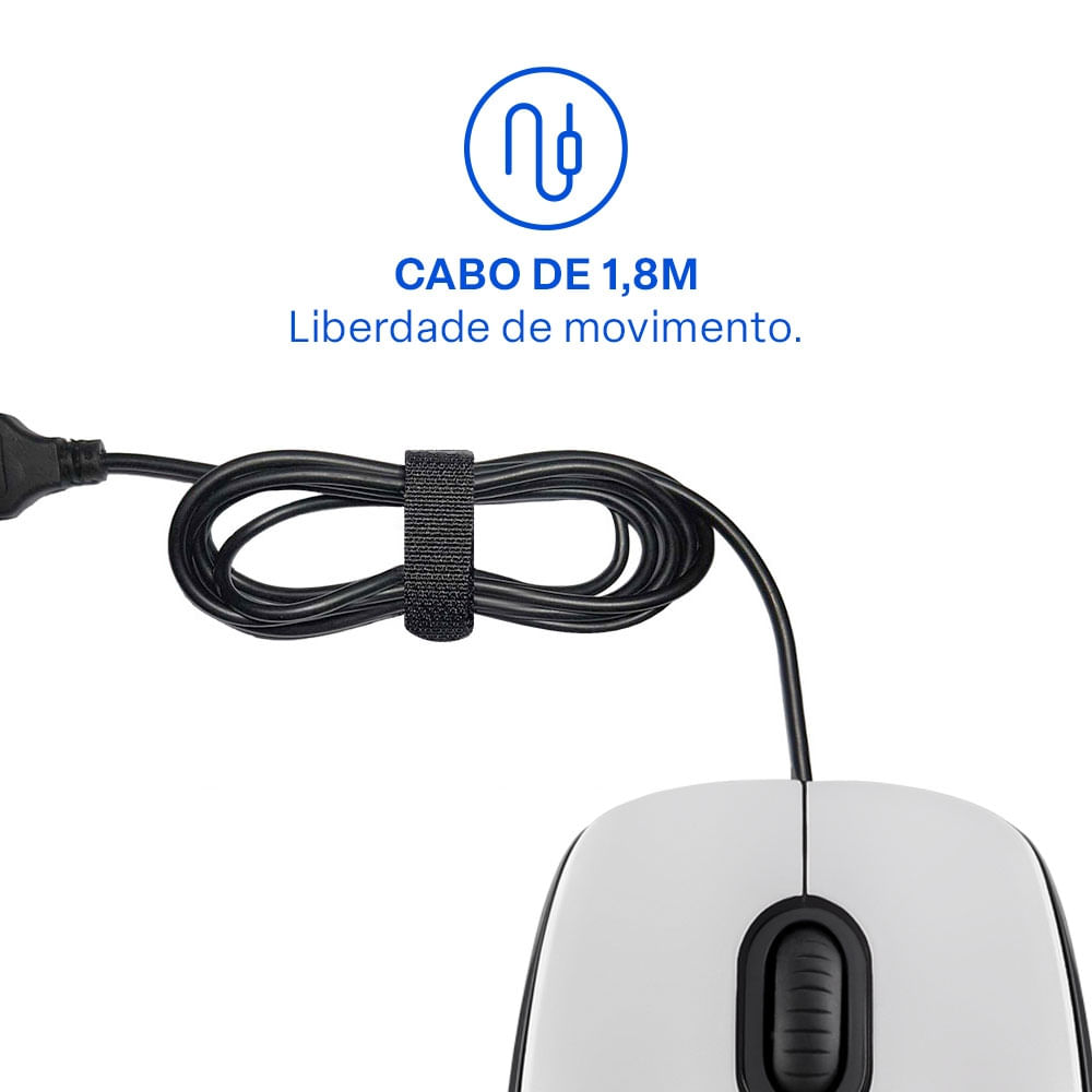 Seu cabo de 1,80 metros oferece ampla liberdade de movimentação na mesa, garantindo flexibilidade na organização do espaço de trabalho.