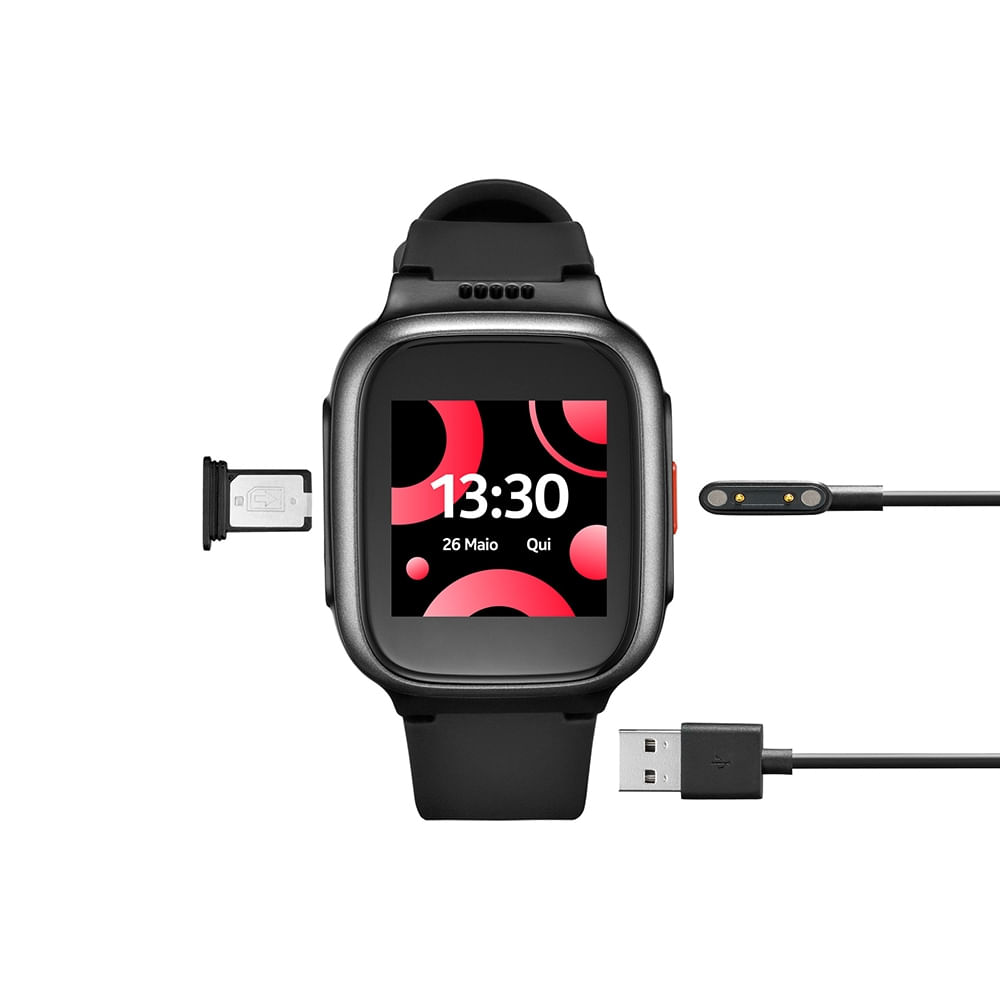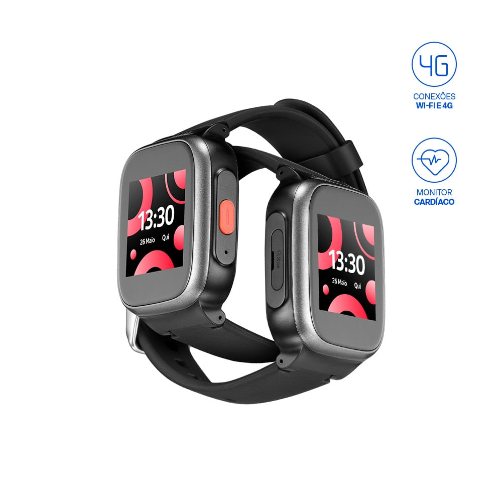 SeniorWatch 4G + Wi-Fi com Chamada por voz + Localização GPS + Monitor cardíaco + Oxímetro + Botão SOS - Preto - P9202OUT [Reembalado]