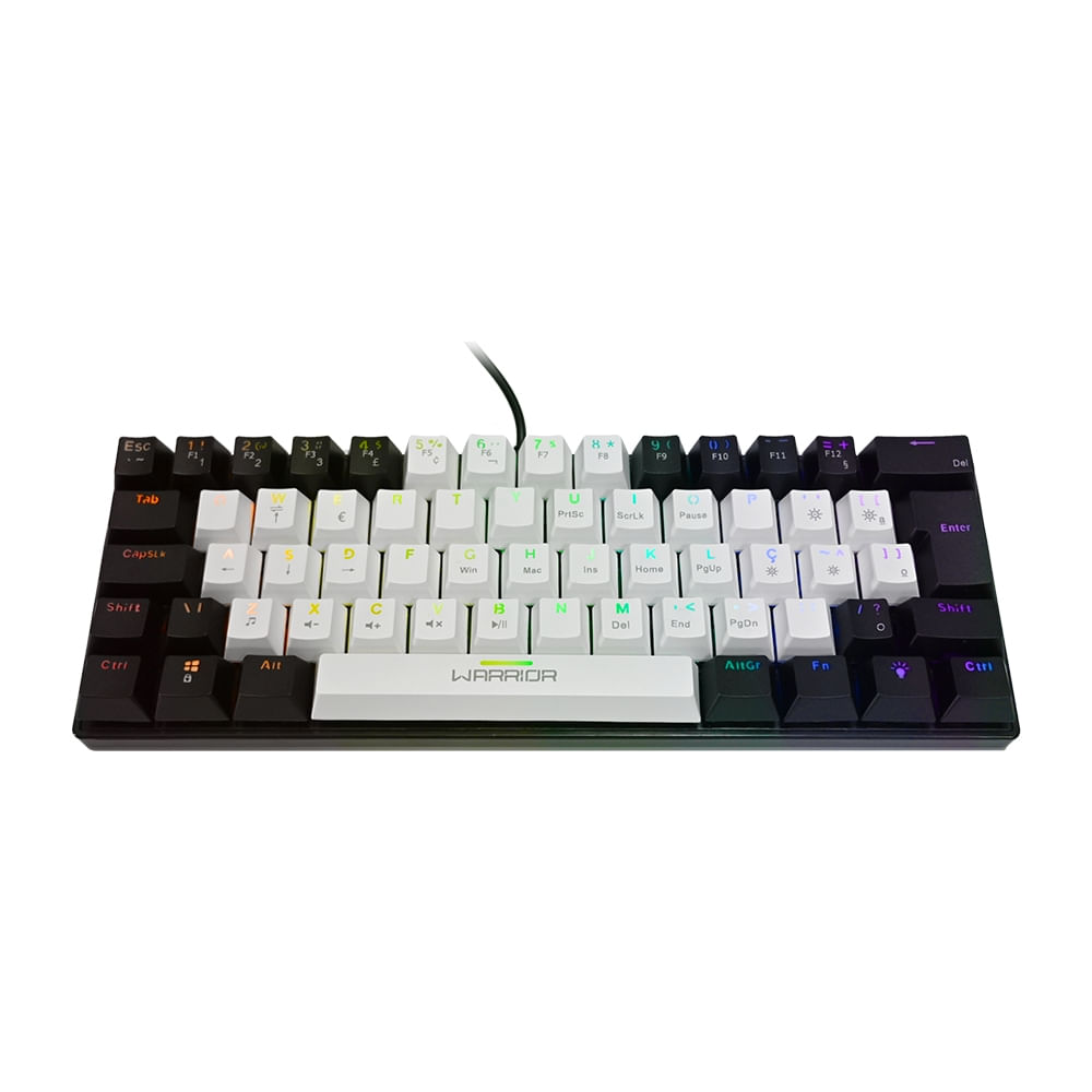 O teclado mecânico Royal Precision possui o formato 60%,com design compacto.Suas cores combinam com qualquer setup. O Switch Warrior blue pro porciona respostas rápidas e precisas,com feedback táctil e audível para que você possa extrair o melhor das suas habilidades. Além disso,possui uma durabilidade de até 50milhões de toques por tecla e um fio trançado resistente a rasgos.