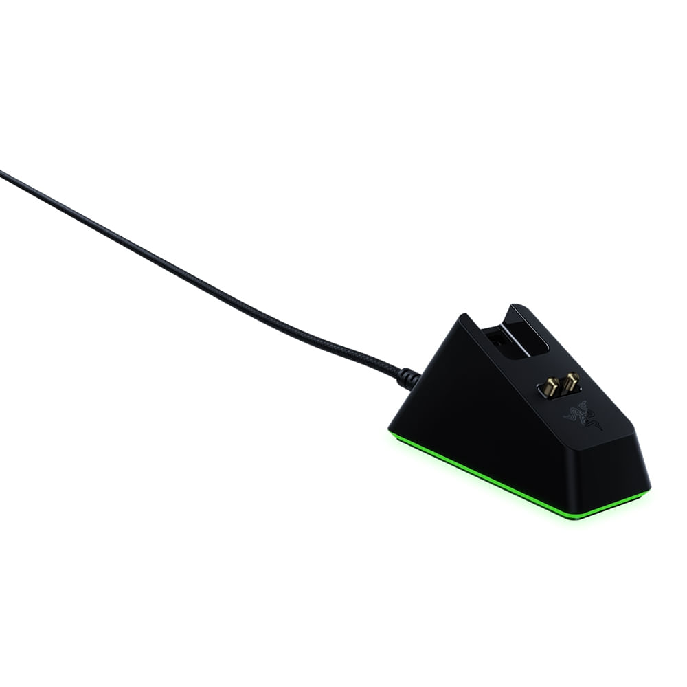 A Base de Carregamento Sem Fio para Mouse com Chroma™ RGB Razer combina funcionalidade com um toque de estilo. Projetada para ser compatível com os mouses Razer Deathadder V2 PRO, NAGA PRO, BASILISK ULTIMATE e VIPER ULTIMATE, essa base oferece um carregamento sem fio rápido e eficiente. O dock magnético vem com iluminação RGB de status de carga, permitindo que você monitore facilmente o nível de bateria do seu mouse — verde para carga cheia, amarelo para médio e vermelho para crítico. Além disso, seus pés antiderrapantes garantem estabilidade durante o uso, evitando que o dock se mova ou deixe marcas na sua mesa.