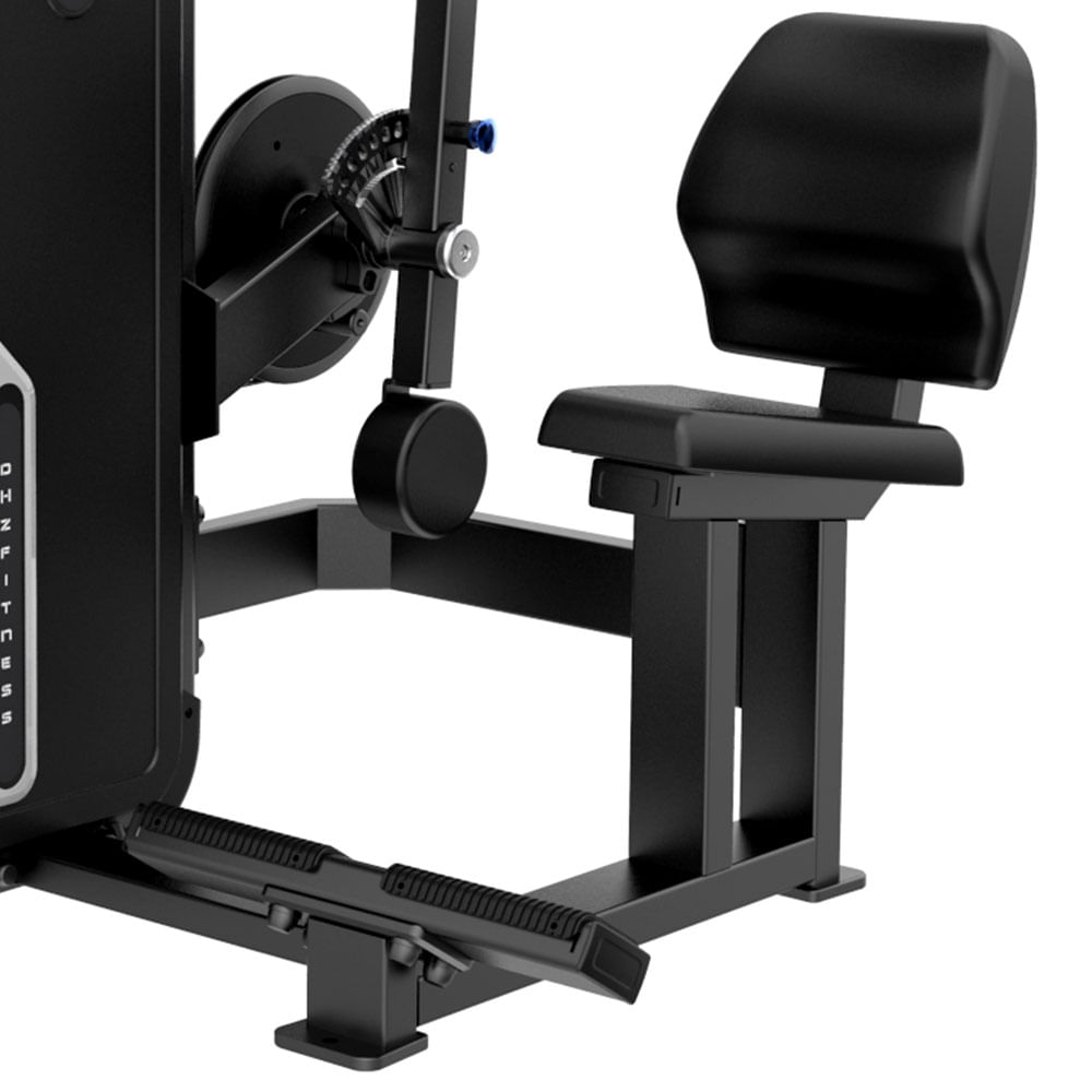 • Com ponteiras das manoplas em alumínio • Torre com tamanho padrão e ilustração da execução do exercício e grupo muscular em ação • Estofado com capa protetora para a cabeça • Sistema de ajustes do banco com 4 alavancas que permitem um ajuste mais fácil e seguro • Base de apoio com acabamento resistente • Suporte para garrafa • Coluna de pesos em aço usinado.