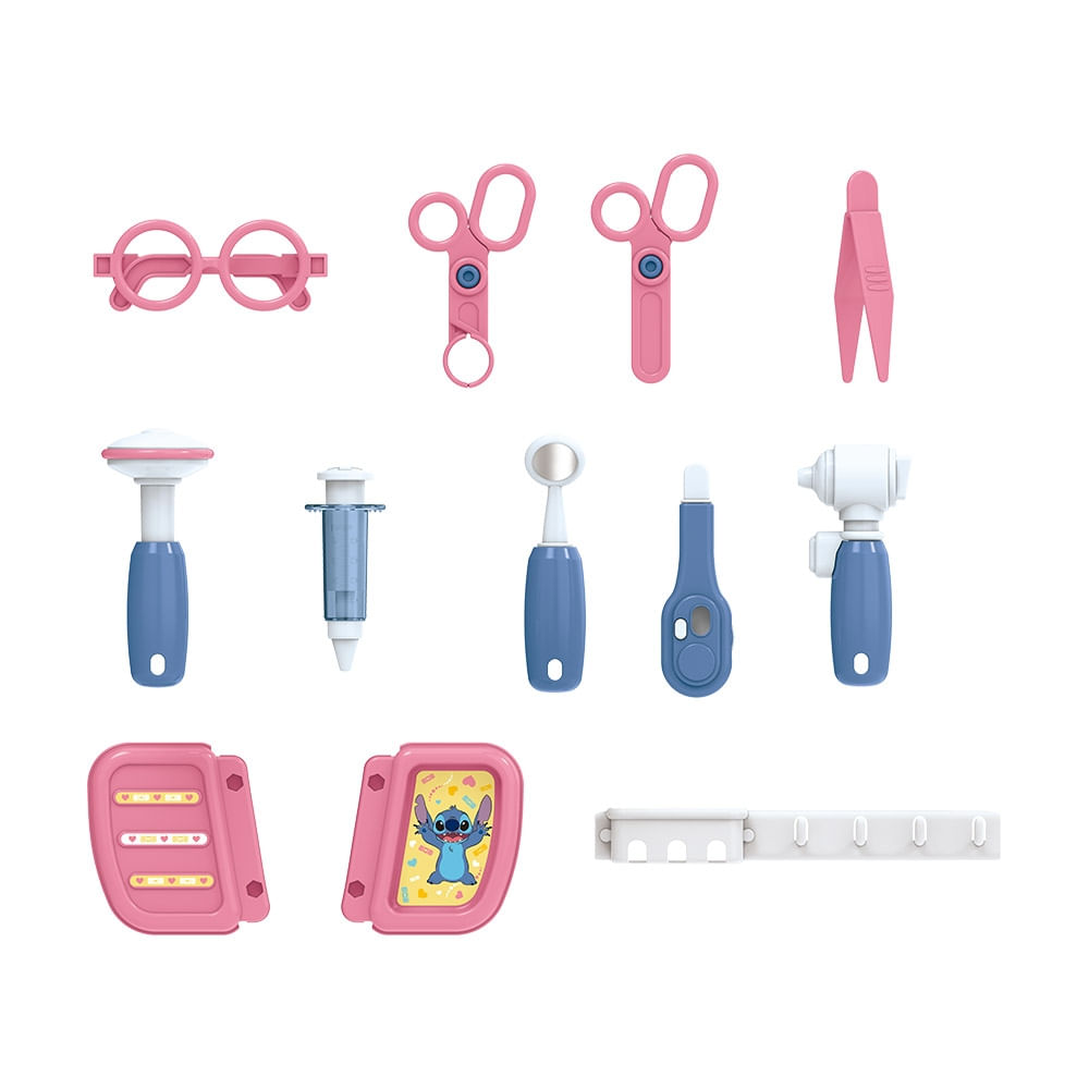Com um design encantador e as orelhinhas do Stitch, ela vem com alças para facilitar o transporte e se transforma em um verdadeiro consultório veterinário.