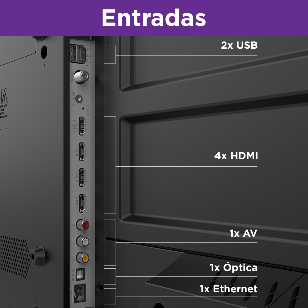 A Multi Roku TV 50 Smart e potente e não trava Seu processador QuadCore contribui para maior durabilidade da TV Com atualizações automáticas de software ela fica cada vez melhor e mais completa