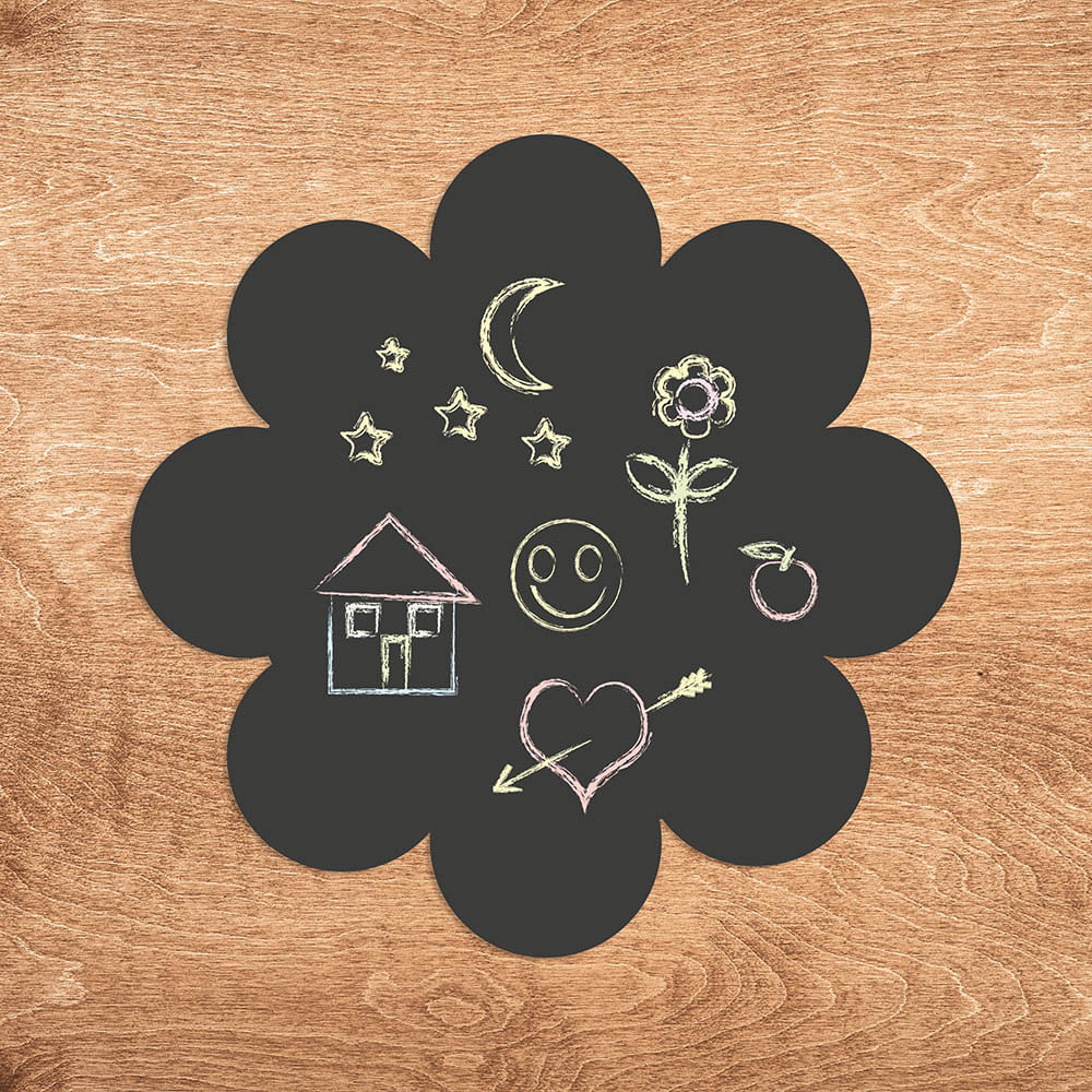 Parte da embalagem é destacável e pode ser utilizado como suporte de giz colorido.
