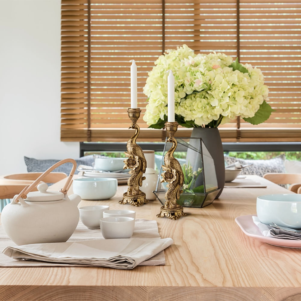 O castiçal pode ser a peça principal para dar aquele up em sua sala e mesa de jantar, seja para contrastar ou tornar aquele espaço mais exclusivo. O pavão é um símbolo de renovação, boa sorte e renascimento em muitas culturas. É feito de poliresina, material resistente (mas não a quedas, viu?) e de alta qualidade.
