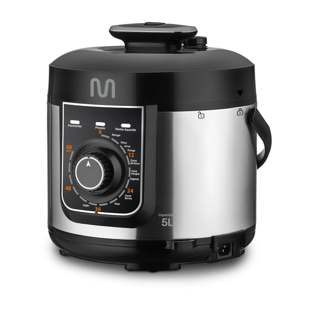 Descubra a Panela de Pressão Elétrica da Multi e revolucione o preparo das suas receitas! Com uma incrível capacidade de 5 litros, ela é perfeita para cozinhar grandes quantidades de alimentos de uma vez só. Seu funcionamento super silencioso e a ausência de vapor tornam o preparo muito mais agradável e discreto.