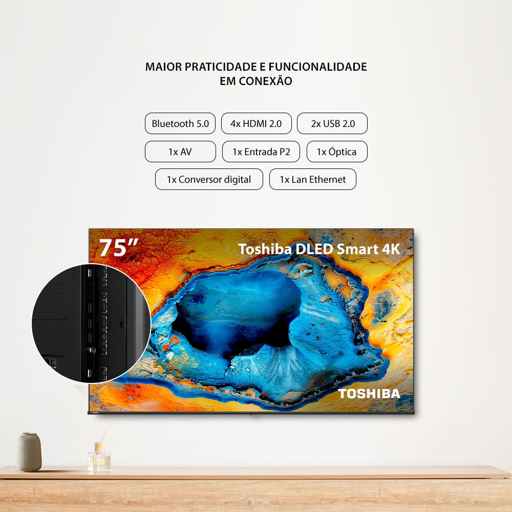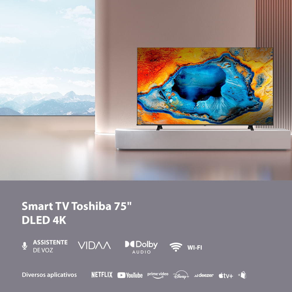 Smart TV DLED 75" 4K Toshiba 75C350NS VIDAA 4 HDMI 2 USB Wi-Fi - TB033MOUT [Remanufaturado]