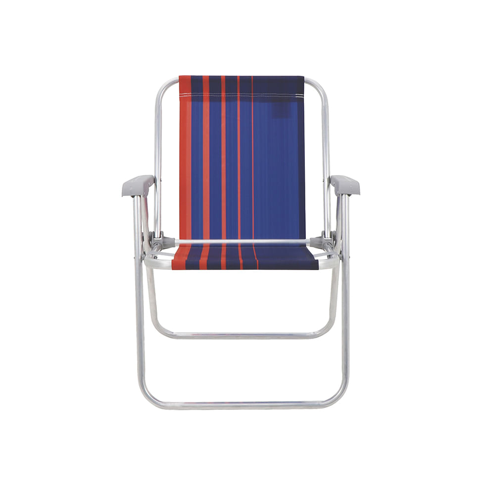 Cadeira de Praia Tramontina Samoa Alta em Alumínio com Assento Azul Escuro e Laranja