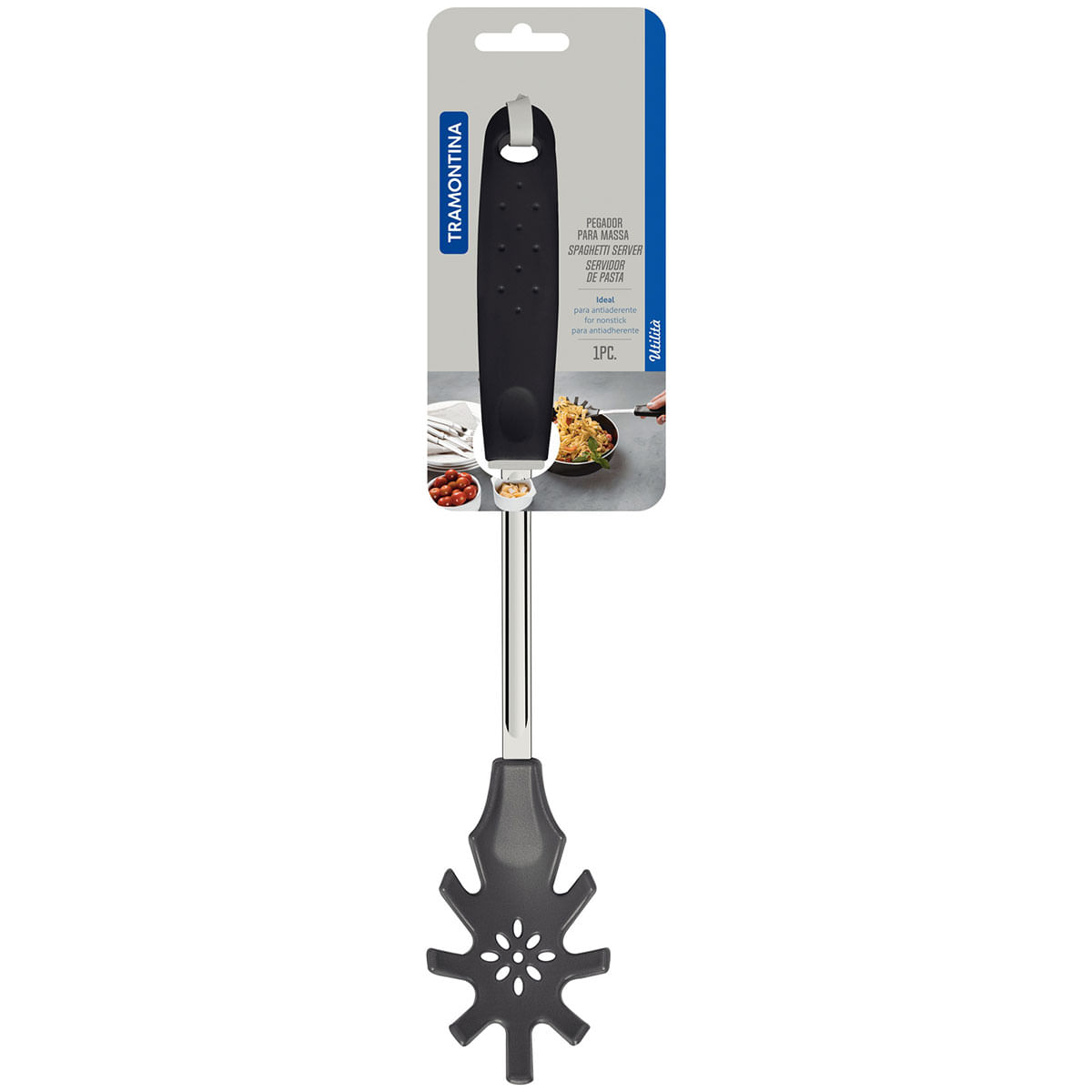 Permita que o momento à mesa fique ainda mais encantador com o pegador para massa Tramontina Utilitá em nylon com cabo de polipropileno preto. Uma peça da linha Utilità, que oferece para qualquer ocasião mais praticidade e um design diferenciado, levando modernidade e cor para os seus dias. A escolha ideal para tornar todas as ocasiões ainda mais especiais. O pegador para massa é produzido com bojo de nylon nylon que possibilita o uso em panelas com revestimentos antiaderentes e cerâmicos, além disso, possui haste de aço inox e cabo de polipropileno que garante um manuseio confortável e seguro.