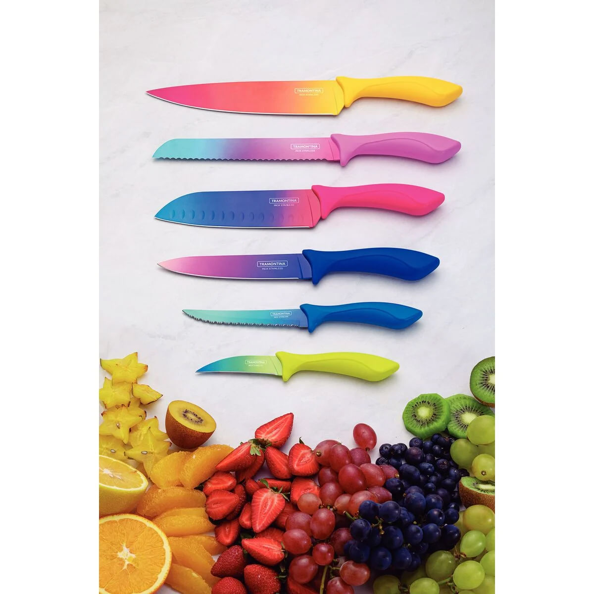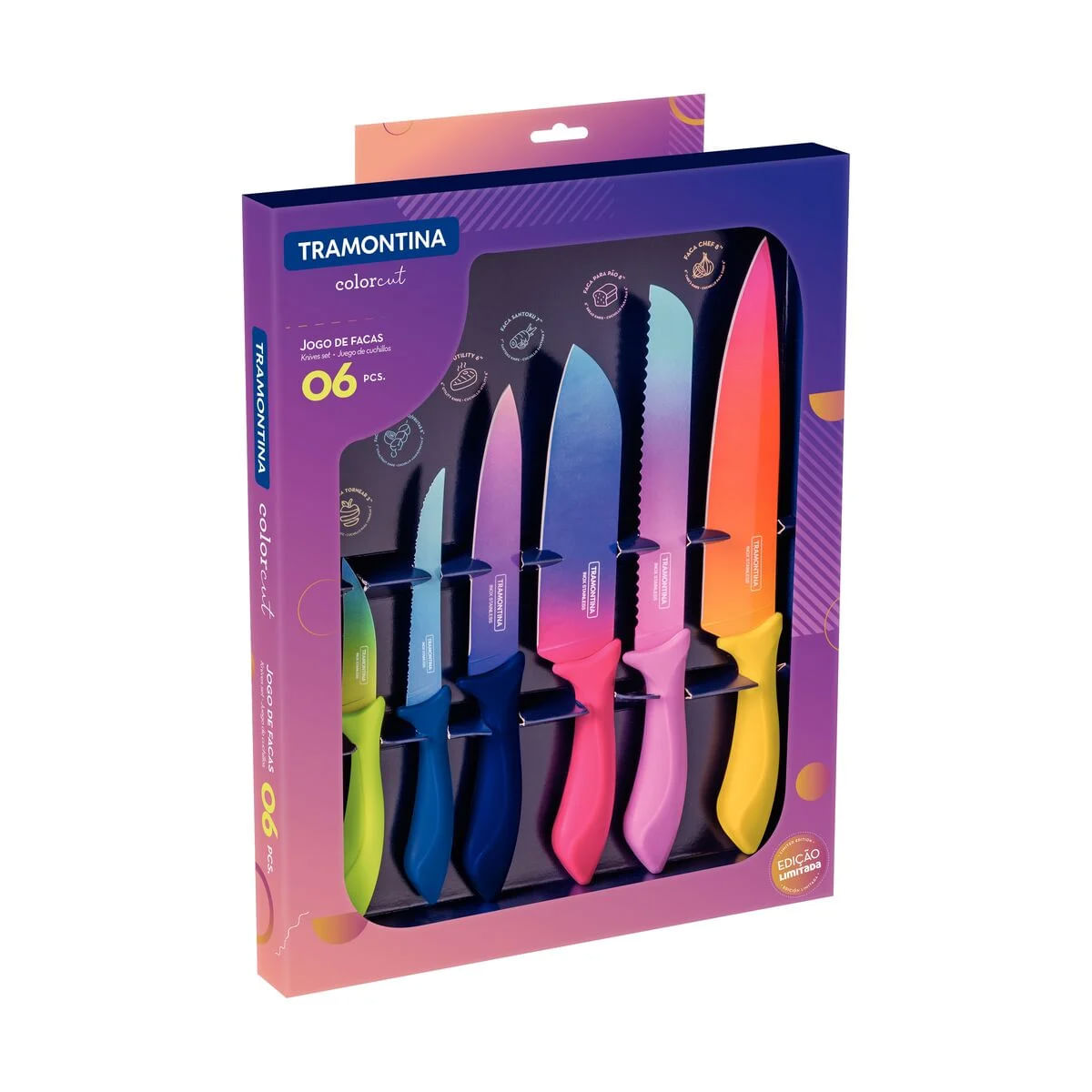 Jogo de Facas Tramontina Colorcut com Lâminas em Aço Inox e Cabos de Polipropileno Pintado 06 Peças