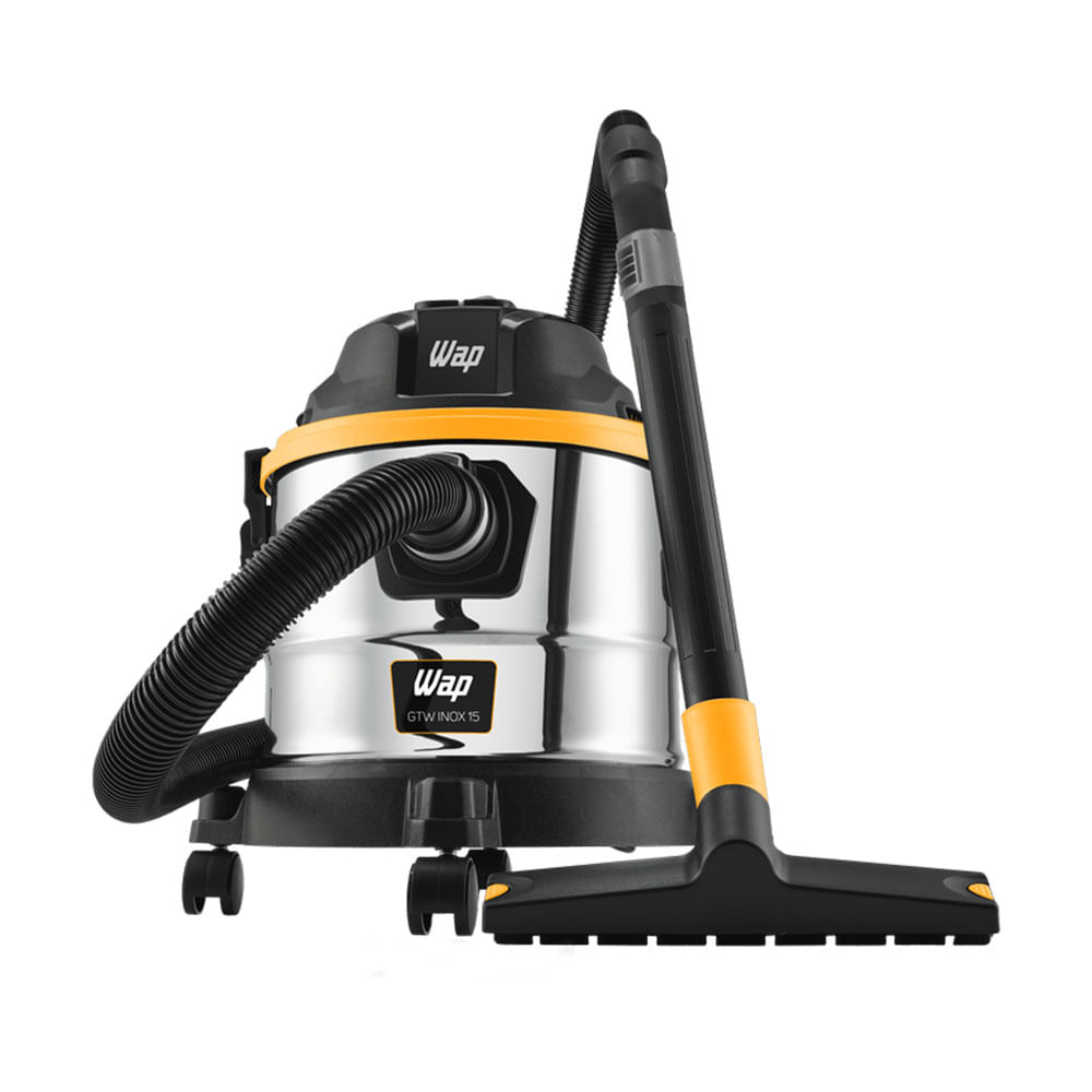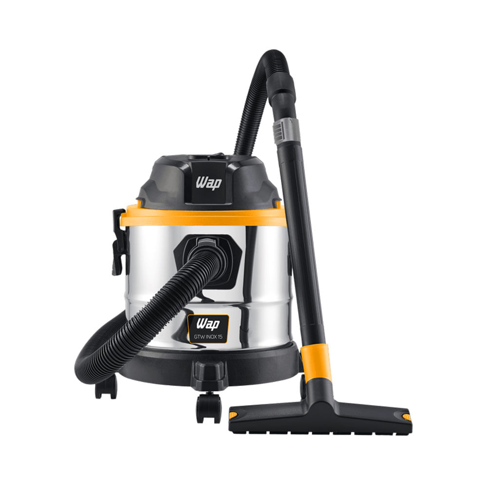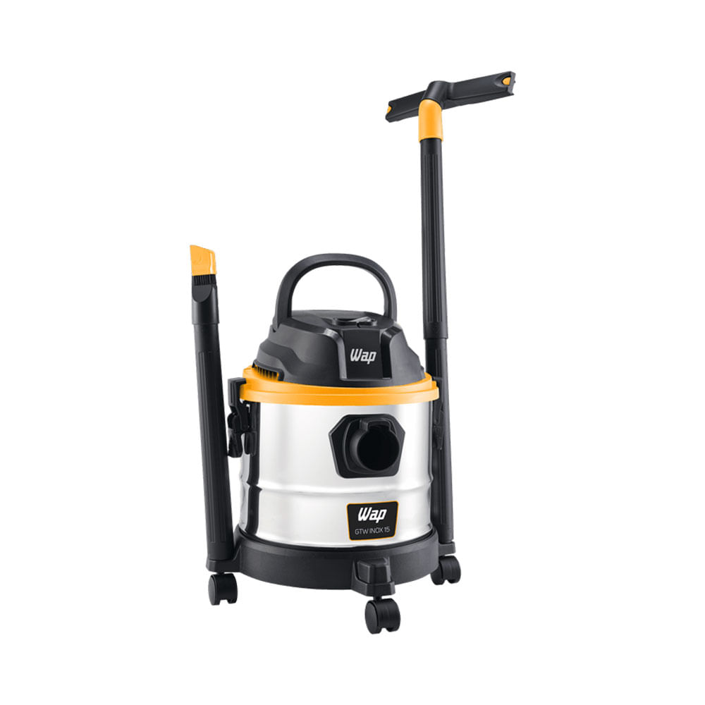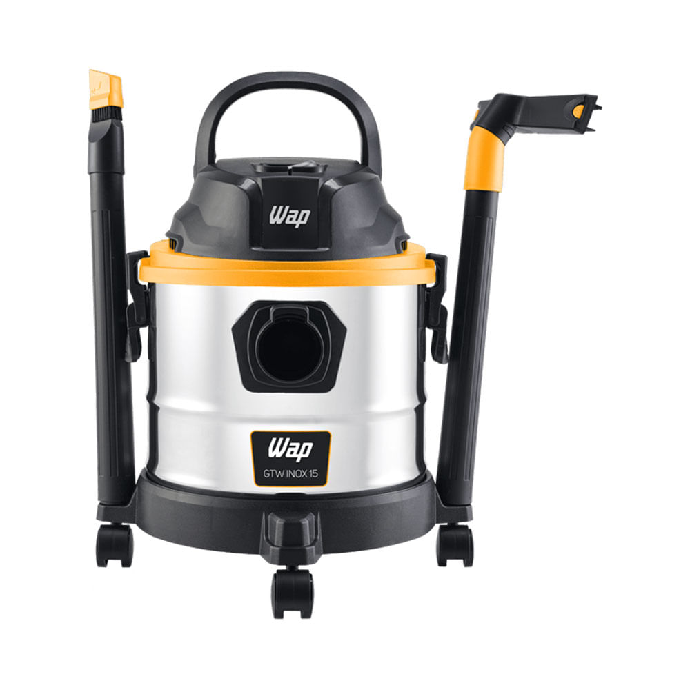 Aspirador de Pó e Água 1700W GTW Inox 15 - Wap Um aspirador moderno, prático e potente, o WAP GTW INOX 15 é um aspirador de pó e água com 1700W de potência, que aspira qualquer tipo de sujeira, seca, úmida ou líquida, em qualquer tipo de ambiente. O recipiente em inox aumenta sua resistência e valoriza ainda mais o seu design moderno e funcional. Vem equipado com três extensões retas, mangueira de 1,7 metros, cabo elétrico de 2,5 metros, bico múltiplo, bico canto e escova. Todos esses acessórios garantem maior alcance na área a ser limpa e traz mais conforto para você. Além disso, o WAP GTW INOX 15 possui bocal de sopro que, além de auxiliar na limpeza de lugares inacessíveis, ainda serve para encher infláveis, acender churrasqueiras ou soprar folhas. Além de possuir porta acessórios que deixará a sua forma de trabalhar muito mais rápida e organizada. Com sua alça e rodas para transporte, o aspirador WAP GTW INOX 15 aumenta a sua mobilidade na hora da faxina, além de alcançar os locais mais difíceis com seus acessórios. Robusto e eficiente, é um equipamento que pode ser usado com intensidade para dar conta da limpeza diária. - Frequência: 60 Hz - Vácuo: 146 mbar - Aspira água - Capacidade do recipiente (total/útil): 14,8 L / 6,5 L Acessórios: 03 Extenções Retas; 01 Bico com Escova; 01 Bico Canto sem Escova Componentes: Filtro Espuma; Filtro de Saco de Pano Lavável; 2,5 m de Cabo Voltagem: 110V ou 220V Cor: Inox, Preto e Amarelo Peso líquido: 3,48 kg Dimensões do produto (C x L x A): 39,5 x 39,5 x 43 cm Fabricante: Wap