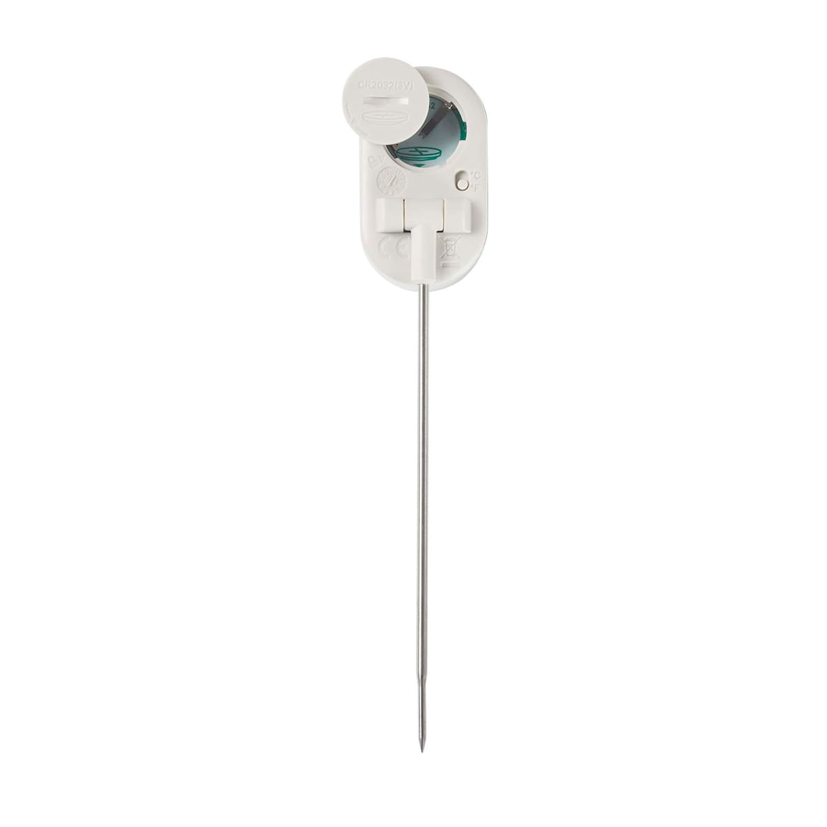A ponta ultrafina de 1,5 mm lê a temperatura interna dos alimentos em menos de 6 segundos no display LCD.