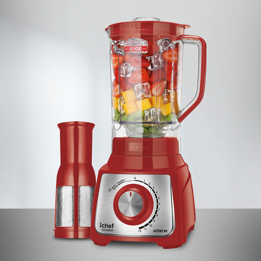 Uma solução potente e com alta capacidade faz toda a diferença no preparo das receitas do dia a dia! E com o Liquidificador Turbo Inox RED ICHEF POLISHOP, você tem mais rapidez e agilidade, graças a sua potência de 1200 Watts, e consegue atender a família toda, porque ele tem 3 litros de capacidade total! PERFEITO PARA PEQUENAS OU GRANDES PORÇÕES! Turbo RED ICHEF é ideal para quem precisa de alto desempenho na hora de preparar sucos, vitaminas, drinks, mousses, smothies, panquecas, maionese e até receitas com ingredientes mais resistentes, como um bolo de cenoura! Sua potência aliada a 12 velocidades também mistura mais rápido os alimentos pastosos, como grão de bico cozido, as papinhas do bebê, cremes e o que mais você quiser! Seu copo tamanho família possui encaixe fácil e superseguro, além de ser ideal para preparar diferentes receitas sem que o aroma e o sabor interfiram! TRITURA E MISTURA DE VERDADE! Com 6 lâminas serrilhadas e superafiadas em aço inox, o Liquidificador Turbo Inox RED ICHEF POLISHOP está sempre pronto para triturar até os alimentos mais duros e consistentes e deixar suas misturas mais homogêneas. Ele ainda conta com função pulsar, para triturar gelo ou polpa de fruta congelada com extrema facilidade e rapidez! E para você ter ainda mais praticidade, seu filtro separa as sementes e o bagaço dos alimentos, e deixa seus molhos coados e sucos mais suaves, prontos para beber! O Liquidificador Turbo Inox RED ICHEF POLISHOP tem 1 ano de garantia e é uma exclusividade que você só encontra aqui!