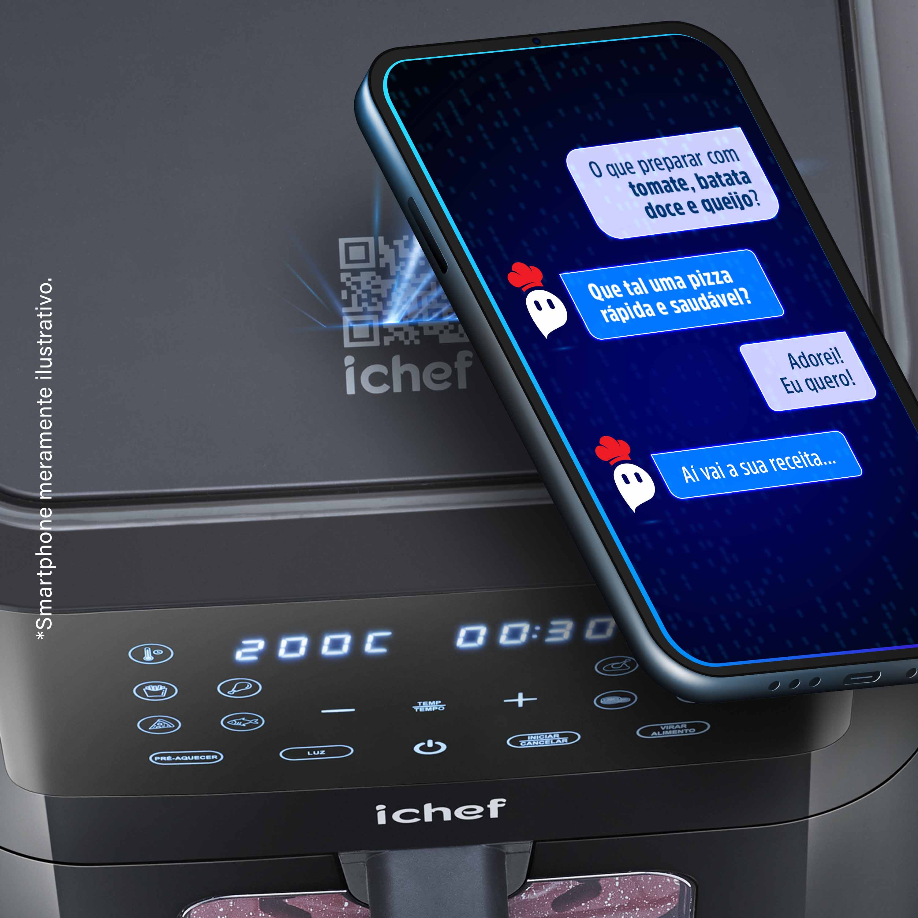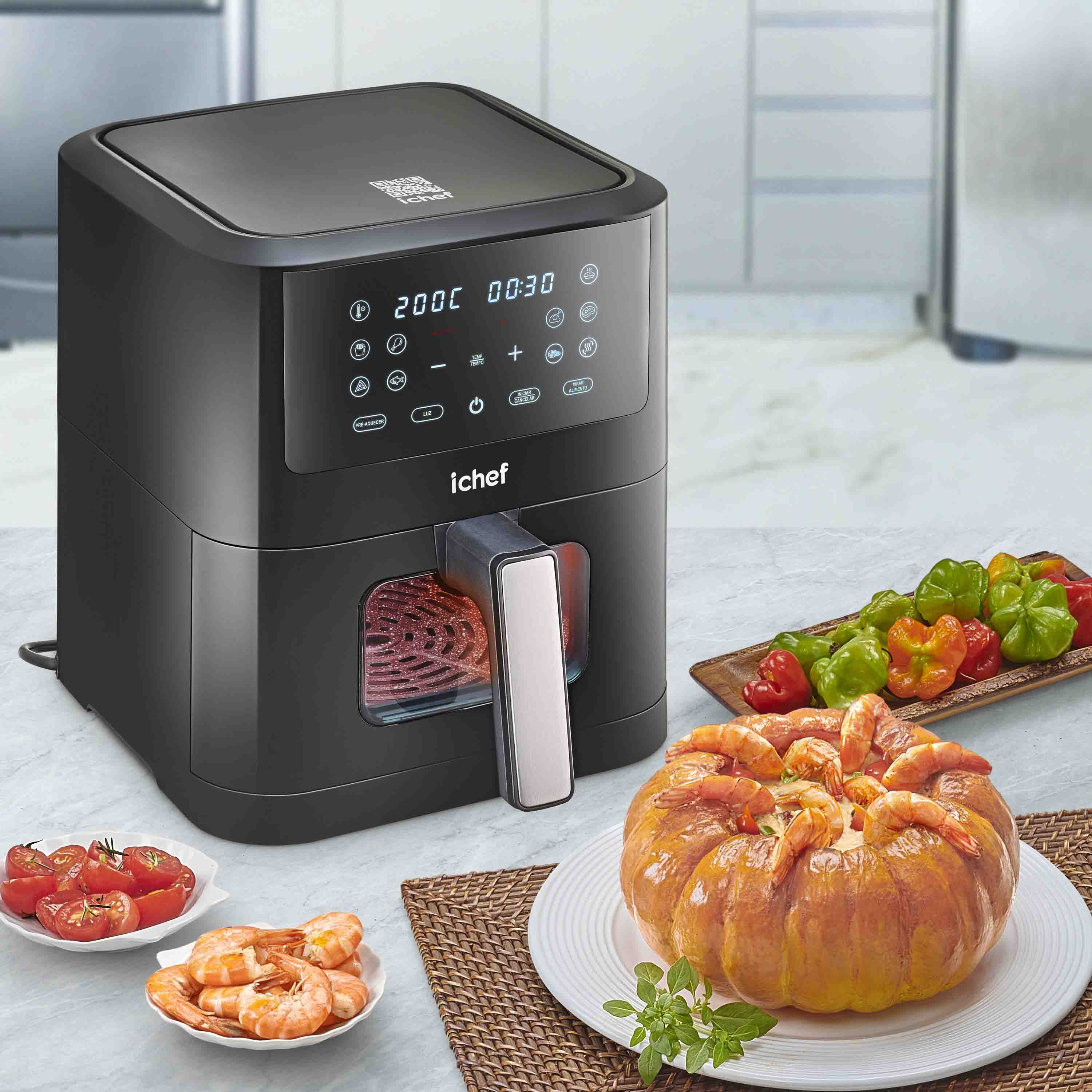 Só quem mais entende de Airfryers pode oferecer a melhor experiência para a sua cozinha! E agora, com o lançamento exclusivo da ichef Smart Vision Polishop você tem muito mais sabor e praticidade que você sempre desejou, em um novo patamar de inovação! Criada para oferecer a melhor experiência em cada detalhe. Com um design moderno, intuitivo e prático, ela traz espaço de sobra para transformar qualquer ingrediente em pratos irresistíveis — seja para o dia a dia ou ocasiões especiais.