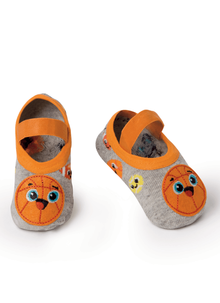 A meia com modelagem sapatilha é produzida em algodão macio, possui elástico confortável e aplique de bola de basquete.