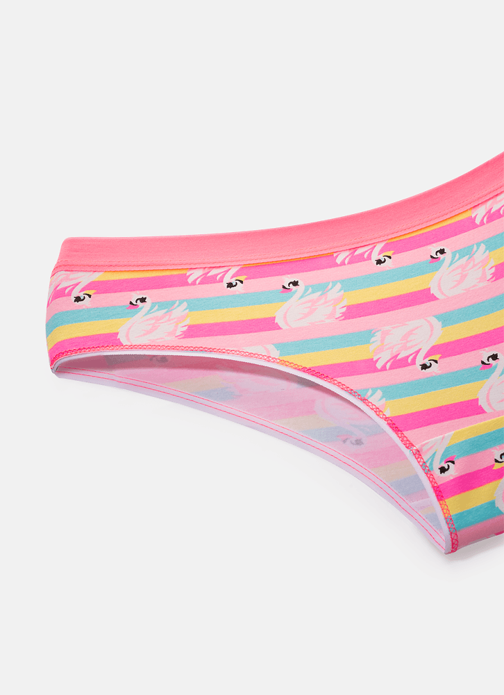 Calcinha modelo boneca Estampa de cisne e listras Tecido Externo: 95% Algodão 5% Elastano Forro: 100% algodão Acabamento em elástico macio Como lavar e conservar bem meu produto: Lavagem a mão, Não alvejar, Não secar em tambor, Secagem em varal por gotejamento a sombra Não passar ou utilizar vaporização, Não limpar a seco, Não limpar a úmido Garantia por defeito: Deverá ser encaminhado dentro da embalagem original; Sem indícios de uso; acompanhado de nota fiscal e com todos os itens constantes na solicitação de troca.