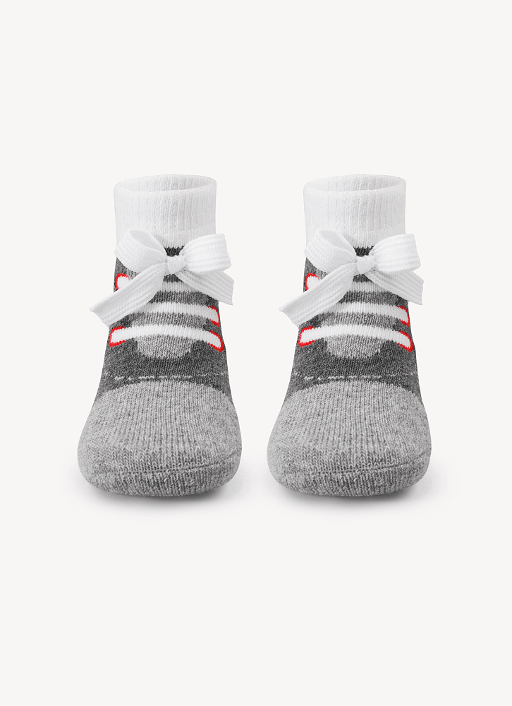 A meia com modelagem soquete atoalhada é produzida em algodão macio em sua maior parte de poliamida, possui desenho divertido de tênis. Indicação de Lavagem: Lavagem a mão; não alvejar Instruções de Conservação: Não secar em tambor; não passar; não limpar a seco Instruções de Garantia: Deverá ser encaminhado dentro na embalagem original Acompanhado de Nota Fiscal. E com todos os itens constante na solicitação da compra.