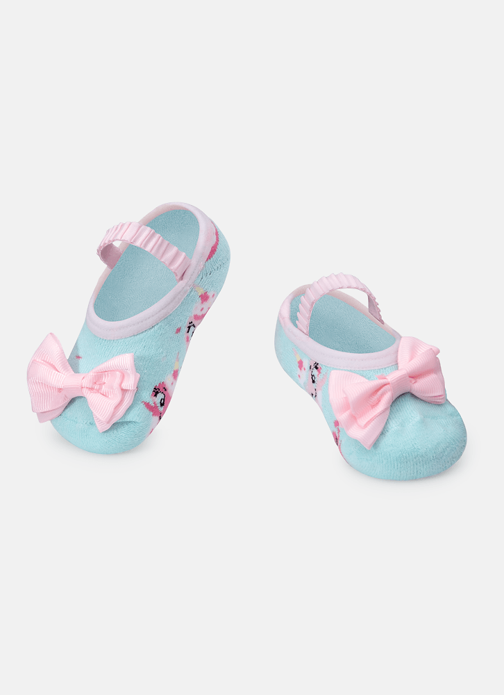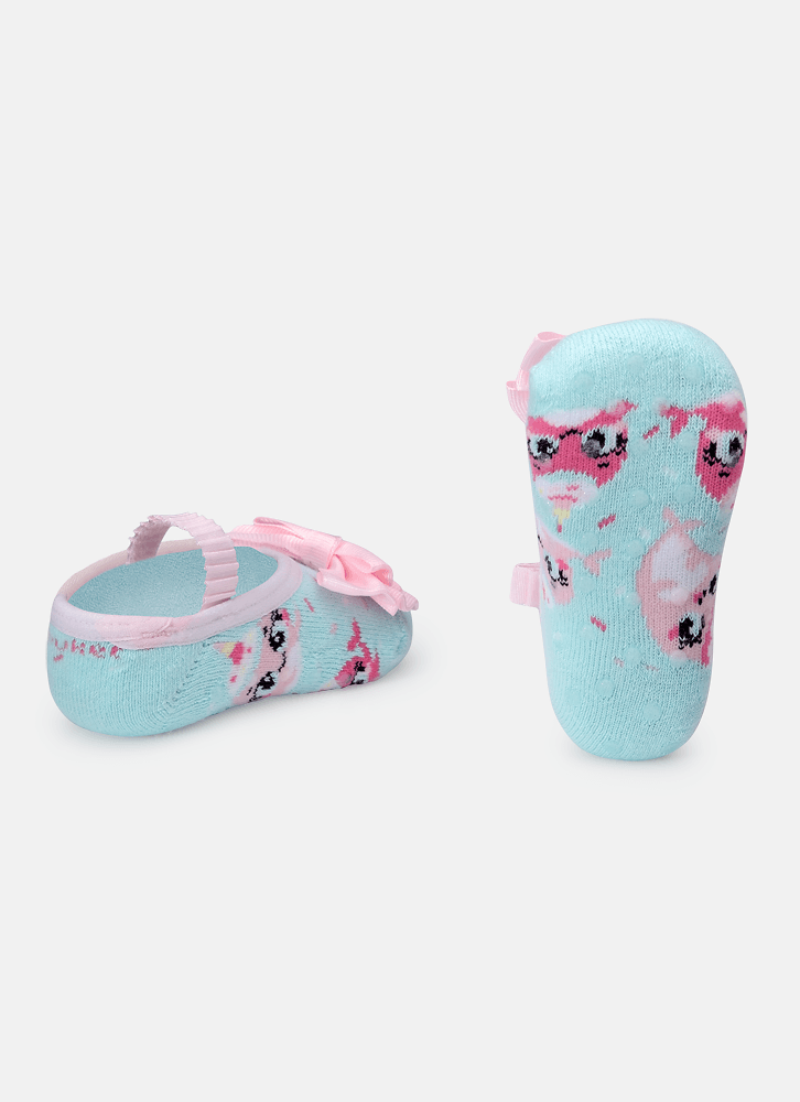 Meia Menina Sapatilha com Antiderrapante e Aplique Narval