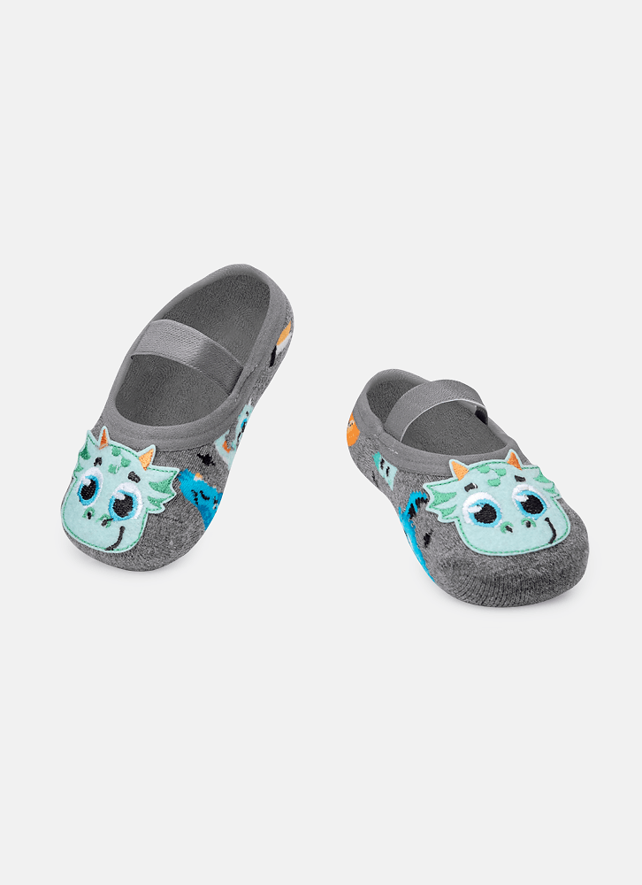 Meia Menino Sapatilha com Antiderrapante e Aplique Dinossauro Surf