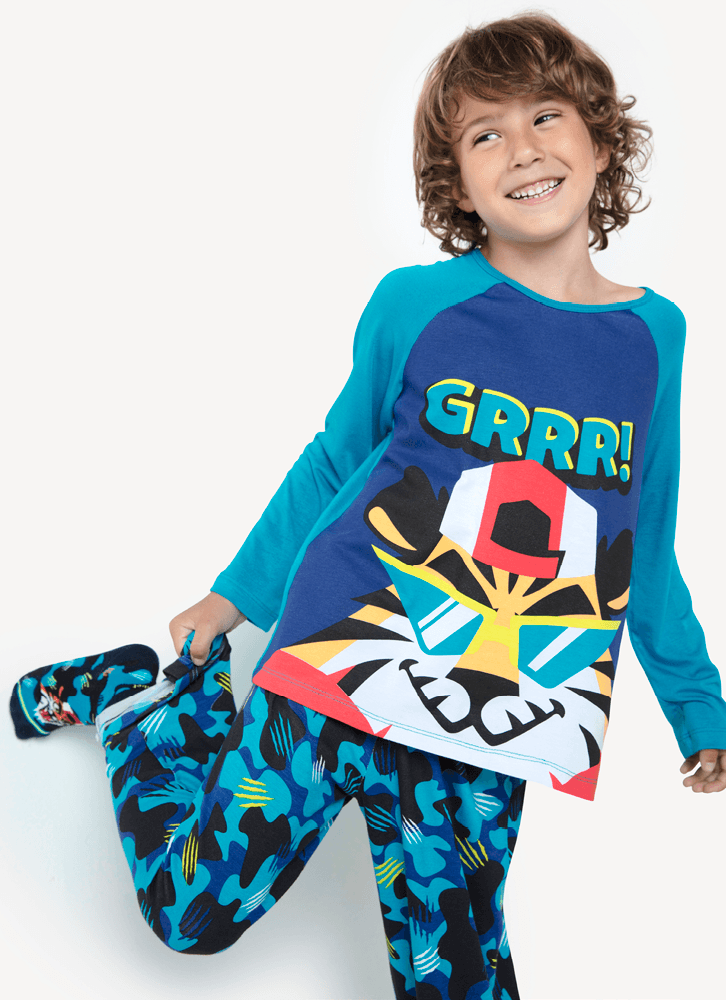 Pijama Manga Longa Viscolycra Menino Teen Tigre