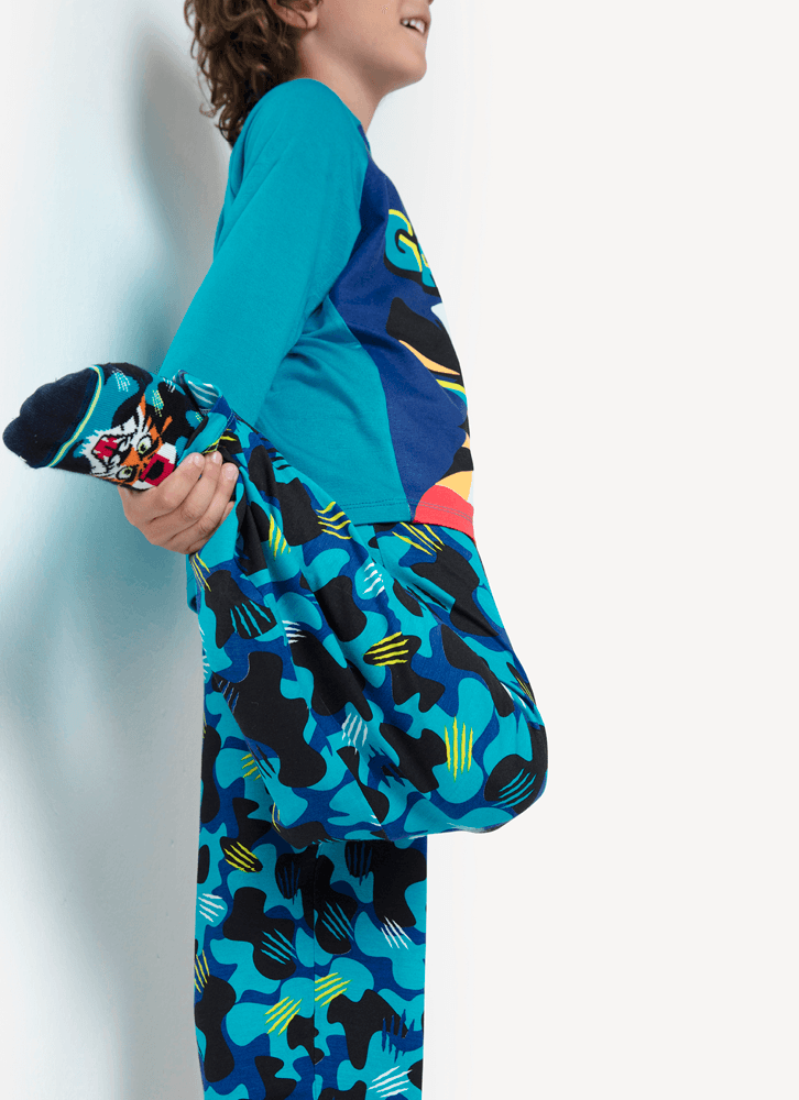 Pijama de viscolycra com estampa divertida, exclusiva e com toque macio. Para noites tranquilas de sono e momentos de relaxamento em casa. Detalhes: ?Pijama com manga longa raglan ?Blusa estampa frontal ?Calça estampa camuflada ?Gola redonda ?O pijama de viscolycra da Puket proporciona conforto durante a vestibilidade, toque macio e ótimo caimento ?Tecido: Viscolycra Cuidados: Lavagem e conservação: Lavagem à mão, não alvejar; não secar em tambor; não Passar; não limpar a seco (mais informações, vide na etiqueta). Garantia: deverá ser encaminhado dentro da embalagem original; sem indicações de uso; acompanhado de nota fiscal e com todos os Itens constante na solicitação da compra.