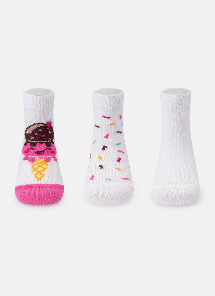Kit com três pares de meias em algodão macio, sendo duas com desenhos divertidos e uma em cor lisa. Possuem cano confortável de altura média. Indicação de uso: Ideal para ser usada com tênis e sapatos. Lavagem a mão Não alvejar Instruções de Conservação: Não secar em tambor Não passar Não limpar a seco (MAIS INFORMAÇÕES, VIDE NA ETIQUETA) Instruções de Garantia: Deverá ser encaminhado dentro na embalagem original ACOMPANHADO DE NOTA FISCAL E com todos os itens constante na solicitação da compra.