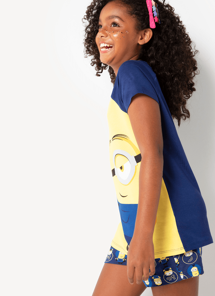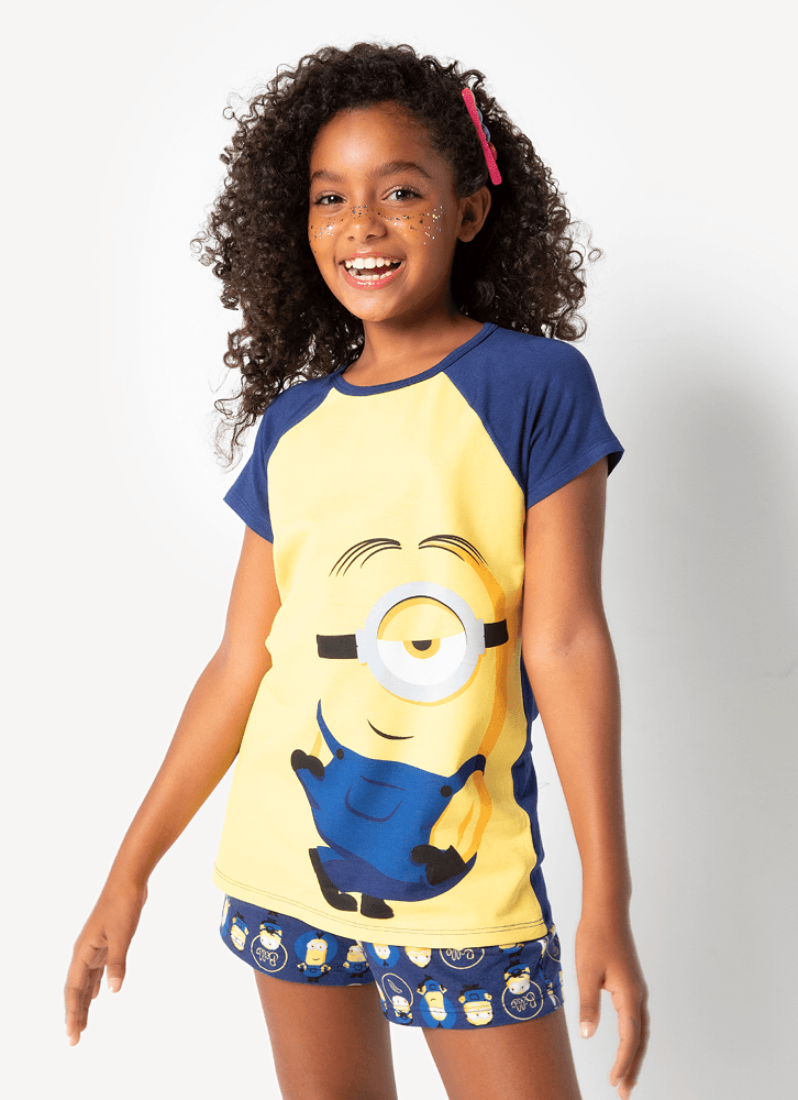 Pijama Manga Curta Menina Teen Viscolycra Minions