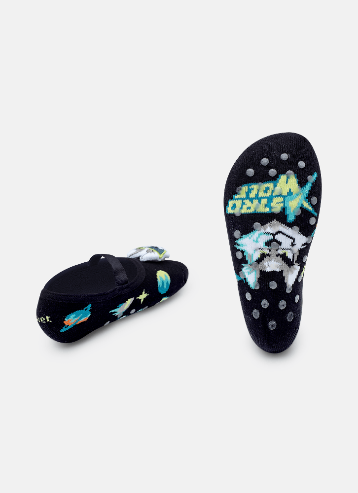 Meia Sapatilha Antiderrapante Menino Lobo Space Com LED