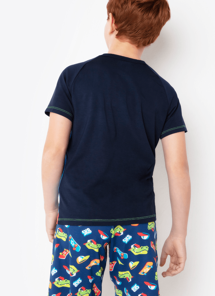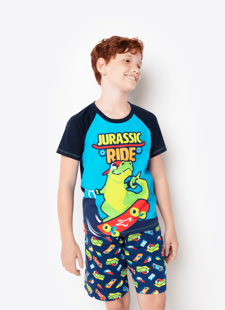 Pijama Manga Curta Menino Teen Viscolycra Dinossauro Skate