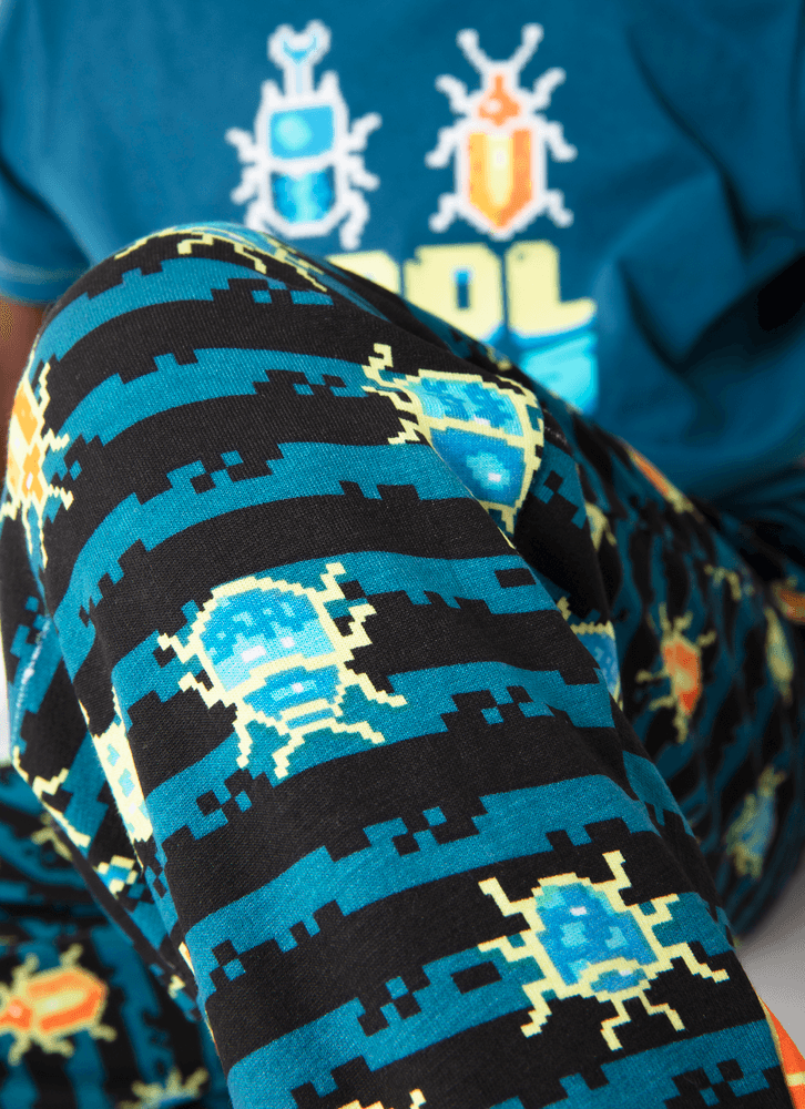 Pijama Longo Manga Curta Menino Viscolycra Pixel Bugs Brilha no Escuro