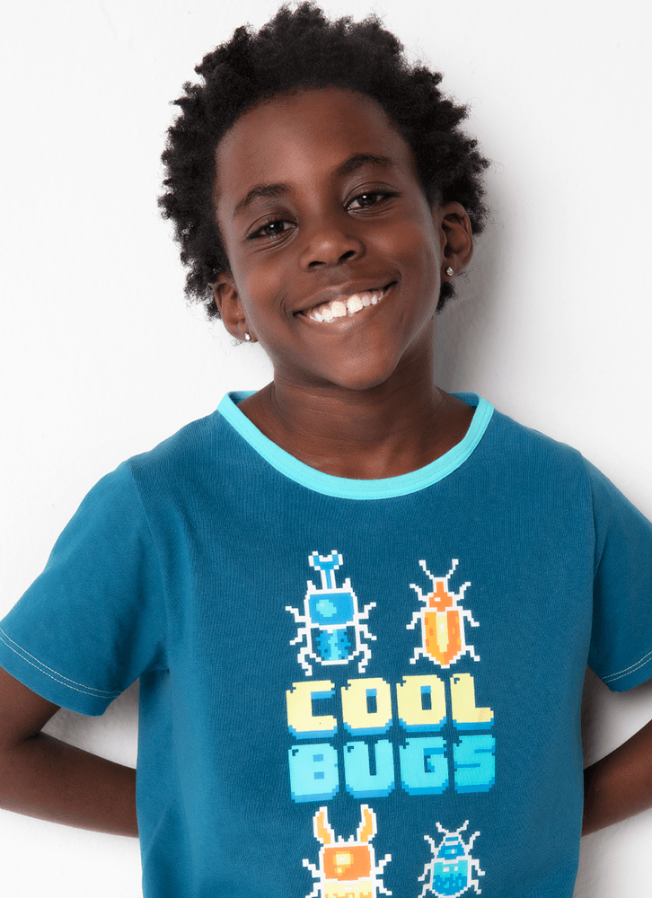 Pijama Longo Manga Curta Menino Teen Viscolycra Pixel Bugs Brilha no Escuro