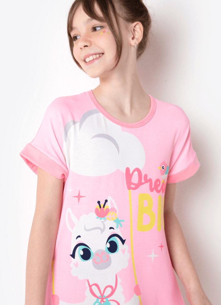 Camisola Manga Curta Menina Viscolycra Lhama Secret