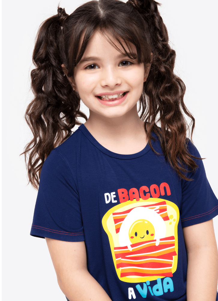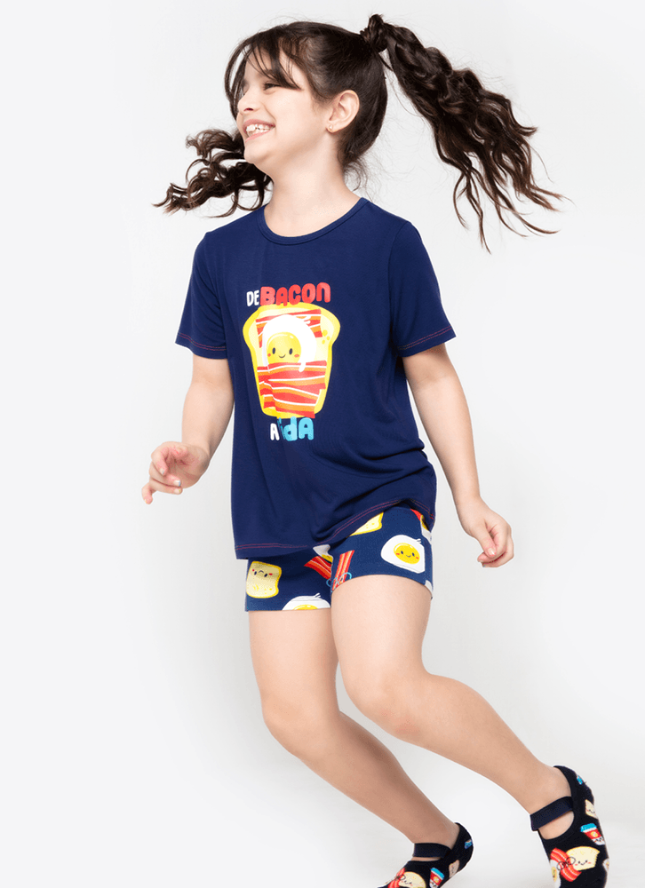 Pijama Manga Curta Menina Viscolycra Família de Bacon a Vida