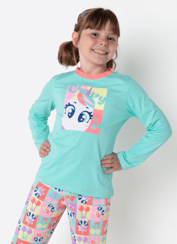 Pijama meia malha com estampa divertida e exclusiva Uni Cherry Puket <3 O pijama longo da Puket proporciona conforto durante a vestibilidade e ótimo caimento. Perfeito para noites tranquilas de sono e momentos de relaxamento em casa. Pijama com camiseta manga longa; Gola redonda; Camiseta com estampa de silk localizado na frente com efeito gel; Calça estampado com elástico macio embutido na cintura; Tecido: blusa meia malha poliéster com algodão e calça de algodão; Cuidados: Lavagem à mão, não alvejar; não secar em tambor; não limpar a seco; secagem em varal por gotejamento a sombra; não passar ou utilizar vaporização; (mais informações, vide na etiqueta). Garantia: Deverá ser encaminhado dentro da embalagem original, sem indicações de uso, acompanhado de nota fiscal e com todos os itens constante na solicitação da compra.