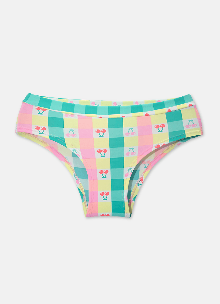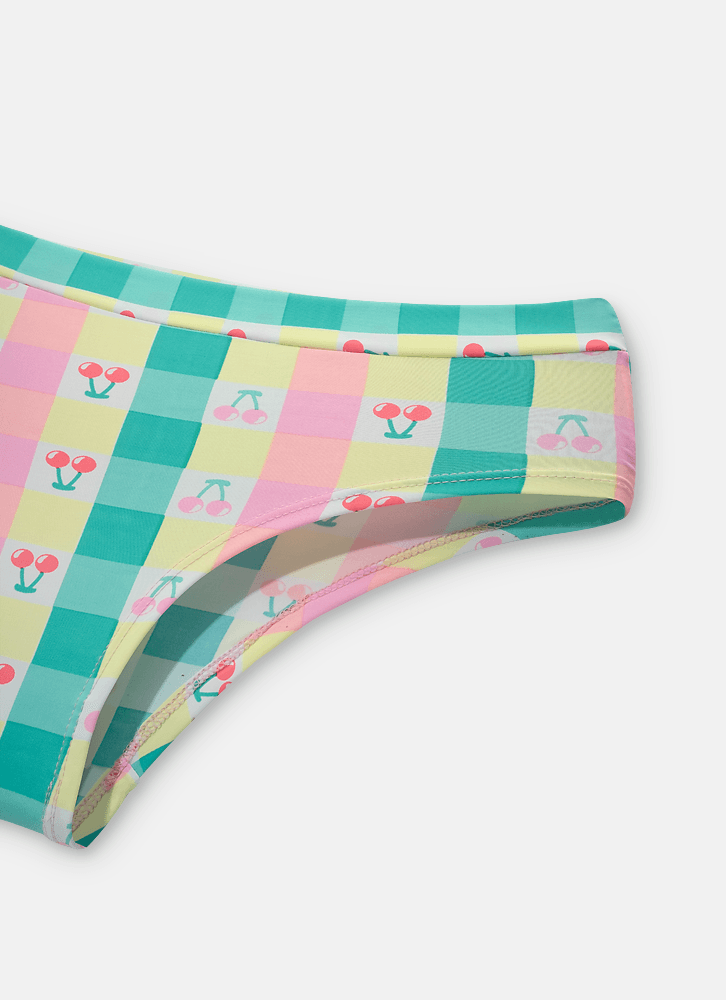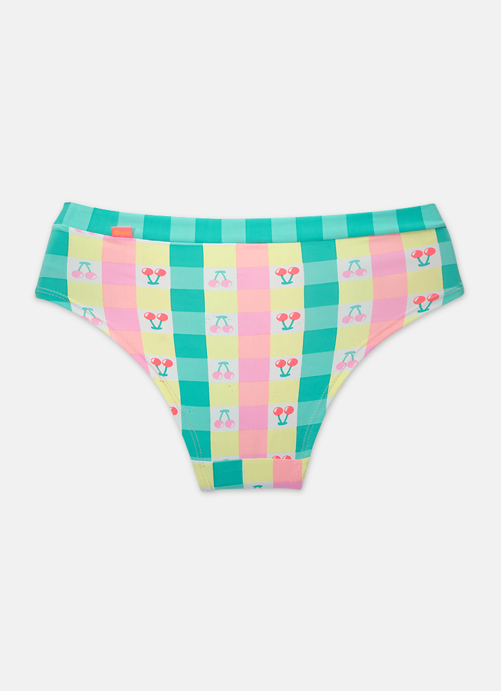 • Calcinha Microfibra Adulto Uni Cherry • Modelo: Boneca • Tecido: Microfibra de poliamida • Toque geladinho • Estampa de vichy colorido com cerejas • Tecido Externo: 89% Poliamida 11% Elastano • Forro: 100% Algodão • Como lavar e conservar bem meu produto: Lavagem a mão, Não alvejar, Não secar em tambor, Secagem em varal por gotejamento a sombra Não passar ou utilizar vaporização, Não limpar a seco, Não limpar a úmido • Garantia por defeito: Deverá ser encaminhado dentro da embalagem original; Sem indícios de uso; acompanhado de nota fiscal e com todos os itens constantes na solicitação de troca