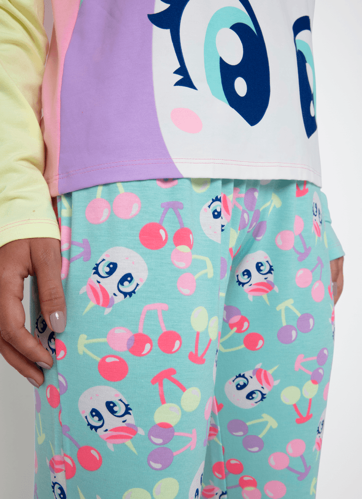 Pijama Manga Longa Viscolycra Feminino Unicórnio Cherry
