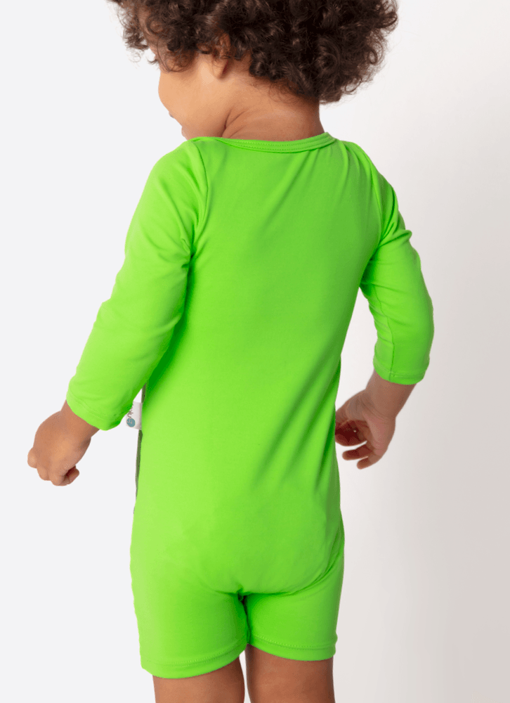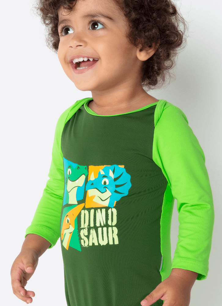 Descrição: macacão manga longa. Possui estampa localizada de Dino, modelagem com ombros expansíveis e abertura por botão de pressão no entrepernas. Nome do Produto: macacão baby Dino trio Modelagem: manga longa com ombros expansíveis Estampa: estampa localizada - silk print Tecido externo: 92% poliamida e 08% elastano. Tecido interno: 90% poliamida e 10% elastano. Ocasião de uso: Ideal para usar em clubes, academias, piscinas, praia. Grade: baby - 3-6 / 6-9 / 9-12 - Diferencial do produto: tecido com toque macio; produto altamente resistente ao cloro; proteção solar UV (não substitui o uso de filtro solar); conforto. - Como lavar e conservar bem meu produto: Lavagem à mão, temperatura máxima de 40c; não alvejar / não branquear; não secar em tambor; secagem em varal; não passar; não limpar a seco, não remover manchas com solventes; não guarde a peça úmida ; não use amaciantes ou produtos com alvejantes a base de cloro; evite contato com superfícies ásperas ; cloro e bronzeadores podem manchar o produto; após o uso, enxague bem a peça com agua fria; a contínua exposição à luz forte e água clorada pode deteriorar alguns tipos de tecidos e cores. - Garantia por defeito: Deverá ser encaminhado dentro da embalagem original; Sem indícios de uso; acompanhado de nota fiscal e com todos os itens constantes na solicitação de troca.