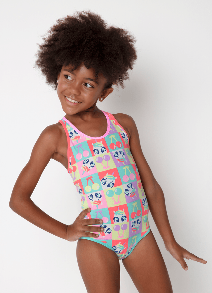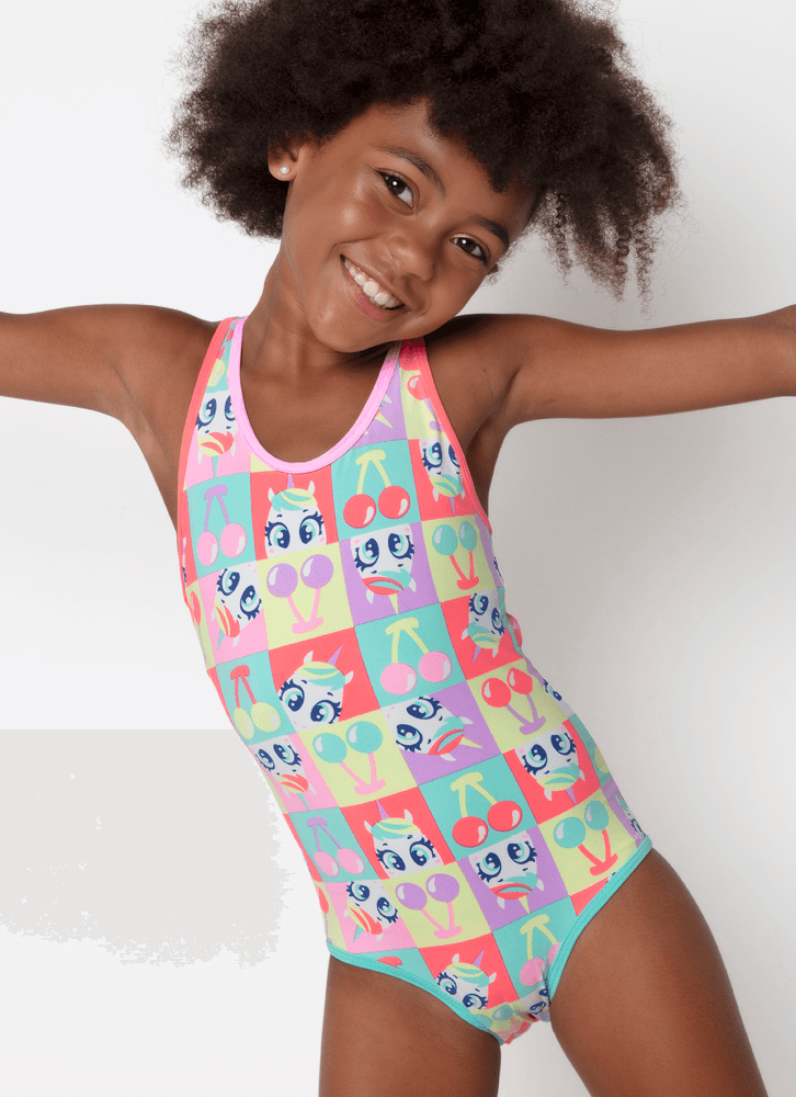 Descrição: maiô kids. Possui estampa corrida, costas com abertura e alças triplas coloridas. Nome do Produto: maiô kids Uni cherry. Modelagem: alças com cruzamento; abertura nas costas Estampa: estampa rotativa - corrida Tecido externo: 92% poliamida e 08% elastano. Tecido interno: 90% poliamida e 10% elastano. Ocasião de uso: Ideal para usar em clubes, academias, piscinas, praia. Grade: 1 / 2 / 4 / 6 / 8 - kids - Diferencial do produto: tecido com toque macio, produto altamente resistente ao cloro; proteção solar UV (não substitui o uso de filtro solar); conforto. - Como lavar e conservar bem meu produto: Lavagem à mão, temperatura máxima de 40c; não alvejar / não branquear; não secar em tambor; secagem em varal; não passar; não limpar a seco, não remover manchas com solventes; não guarde a peça úmida ; não use amaciantes ou produtos com alvejantes a base de cloro; evite contato com superfícies ásperas ; cloro e bronzeadores podem manchar o produto; após o uso, enxague bem a peça com agua fria; a contínua exposição à luz forte e água clorada pode deteriorar alguns tipos de tecidos e cores. - Garantia por defeito: Deverá ser encaminhado dentro da embalagem original; Sem indícios de uso; acompanhado de nota fiscal e com todos os itens constantes na solicitação de troca.