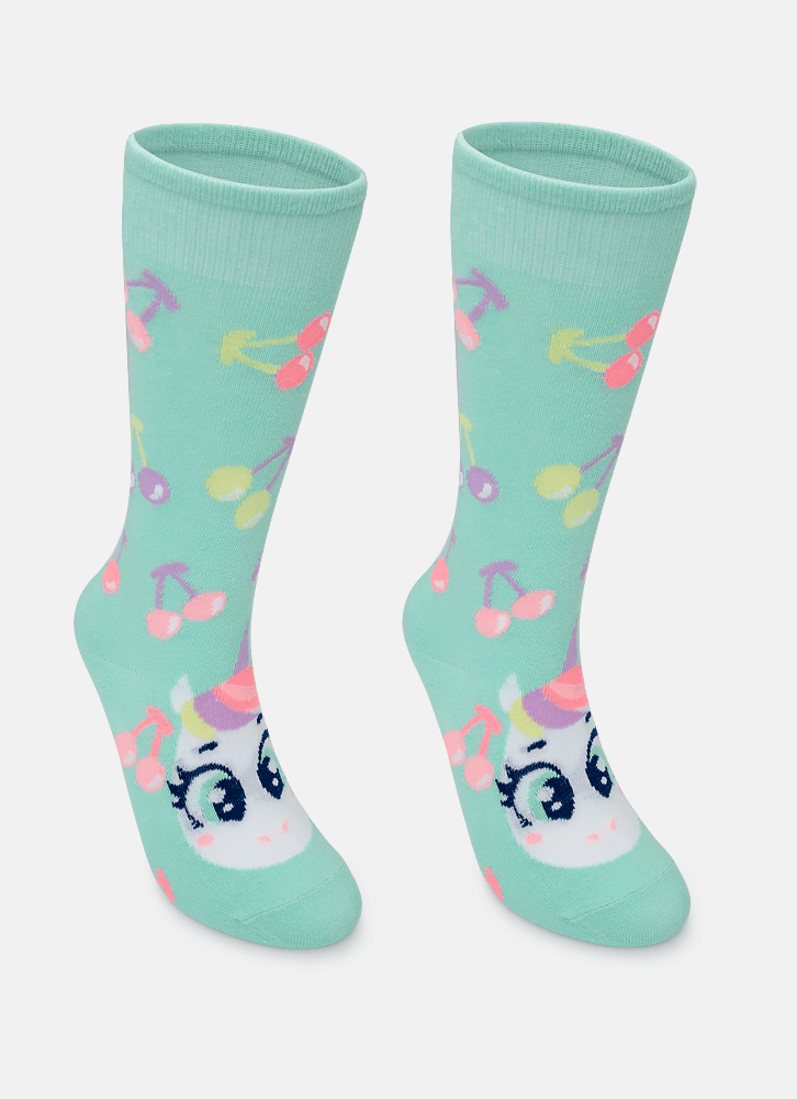 Meia Cano 3/4 Menina Unicórnio Cherry