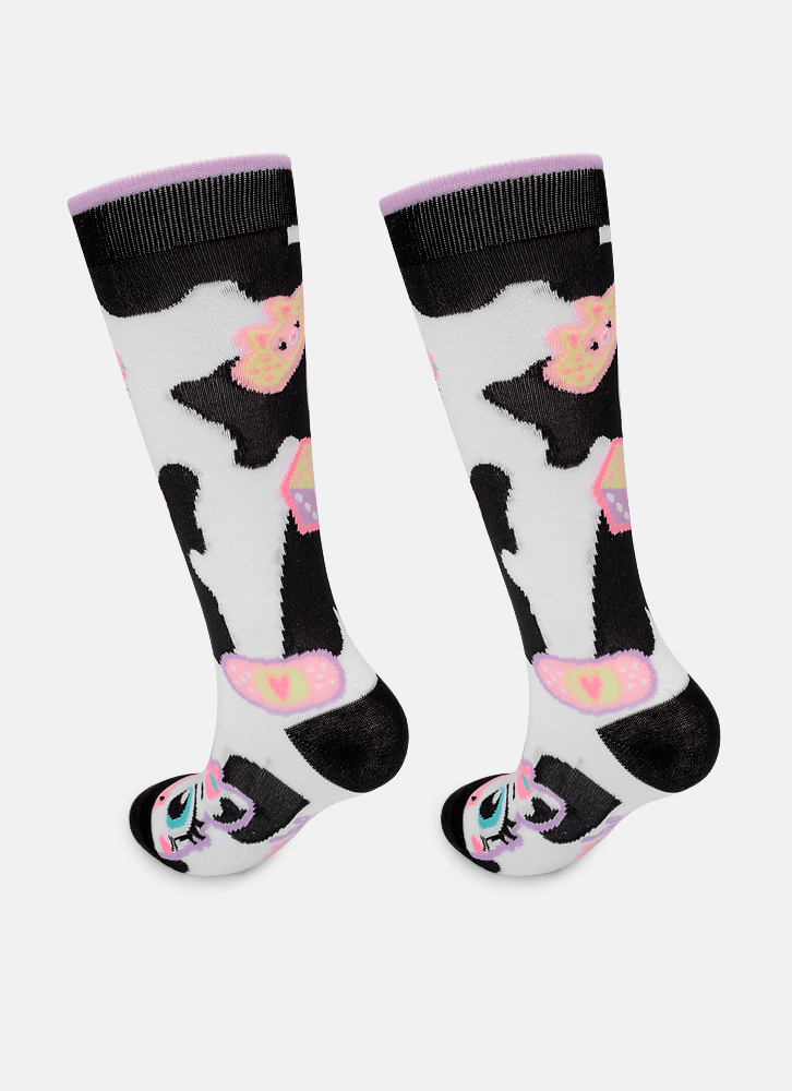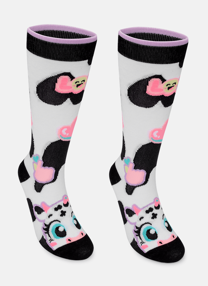 Meia Cano 3/4 Menina Vaca Patches