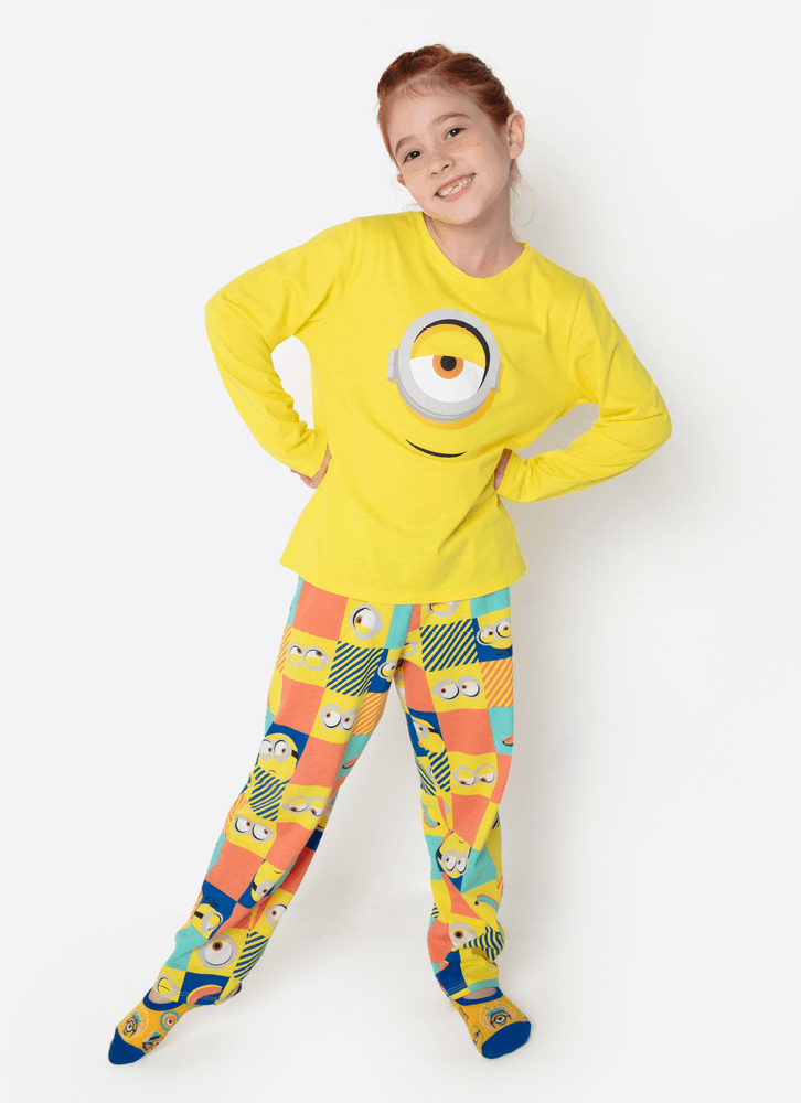 Pijama Manga Longa Algodão Menina Minions