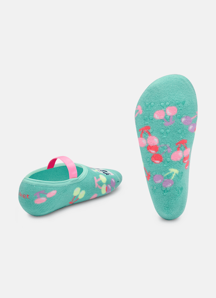 Meia com modelagem de sapatilha e desenho divertido Uni Cherry. Produzida com algodão macio em sua maior parte e desenho em poliamida. Possui acabamento em viés e elástico confortável. Solado com antiderrapante com aroma de morango. Indicação de uso: Ideal para praticar exercícios e brincadeiras sem o calçado e uso no dia a dia. Instruções de Lavagem: Lavagem a mão Não alvejar Instruções de Conservação: Não secar em tambor Não passar Não limpar a seco (MAIS INFORMAÇÕES, VIDE NA ETIQUETA) Instruções de Garantia: Deverá ser encaminhado dentro na embalagem original ACOMPANHADO DE NOTA FISCAL E com todos os itens constante na solicitação da compra.