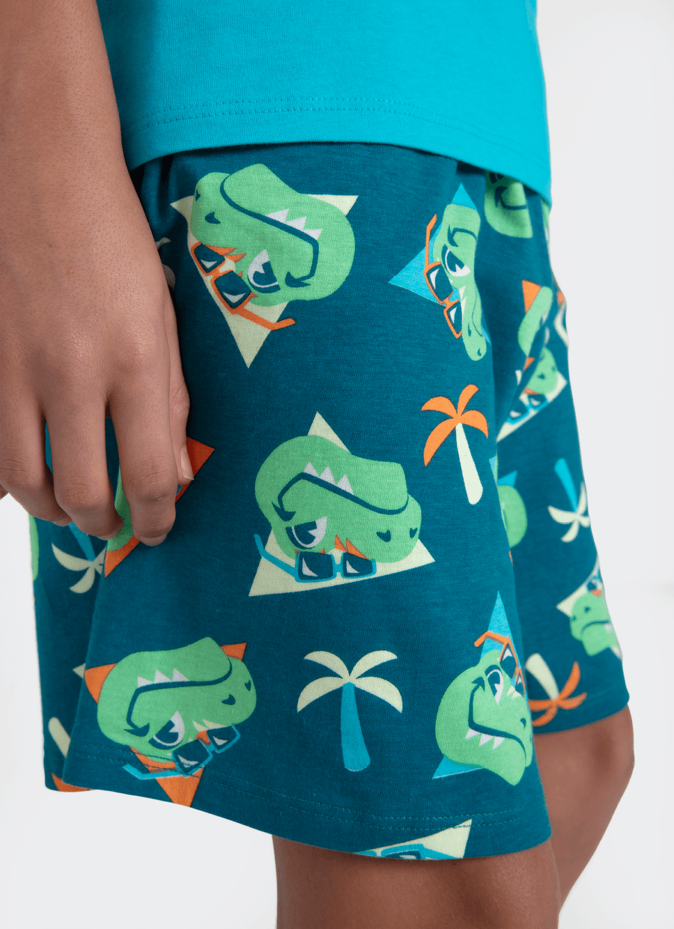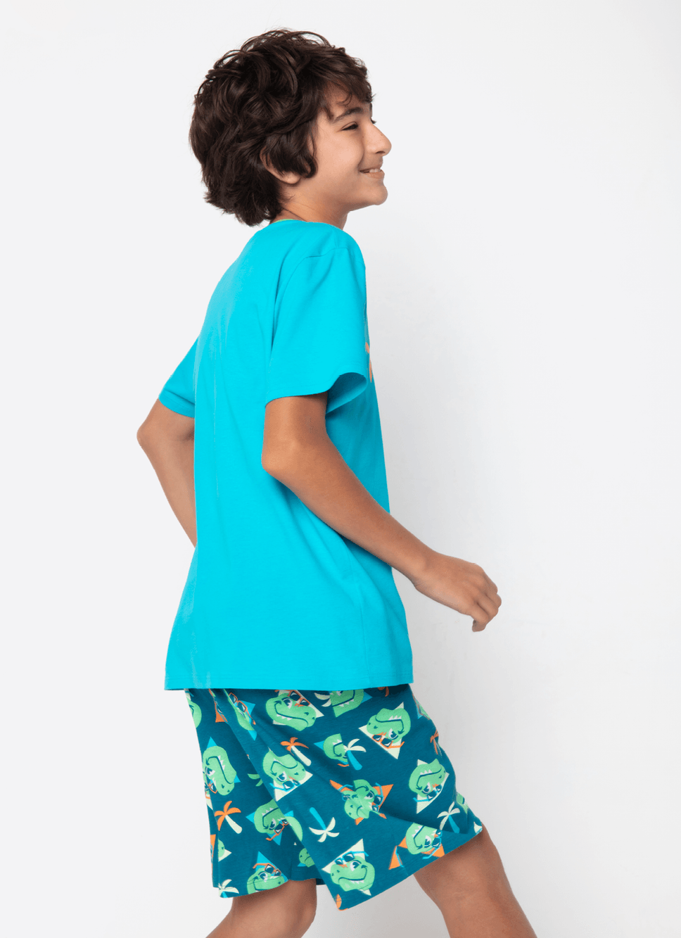 Pijama Manga Curta Algodão Menino Teen Dino Miami