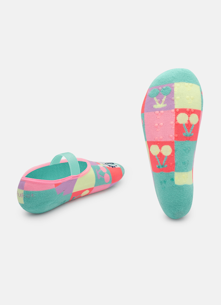 Meia com modelagem de sapatilha e desenho divertido uni cherry Produzida com algodão macio e desenho em poliamida Possui acabamento em viés e elástico liso confortável. Solado com antiderrapante com aroma de morango. Indicação de uso: Ideal para praticar exercícios e brincadeiras sem o calçado e uso no dia a dia. Instruções de Lavagem: Lavagem a mão Não alvejar Instruções de Conservação: Não secar em tambor Não passar Não limpar a seco (MAIS INFORMAÇÕES, VIDE NA ETIQUETA) Instruções de Garantia: Deverá ser encaminhado dentro na embalagem original ACOMPANHADO DE NOTA FISCAL E com todos os itens constante na solicitação da compra.
