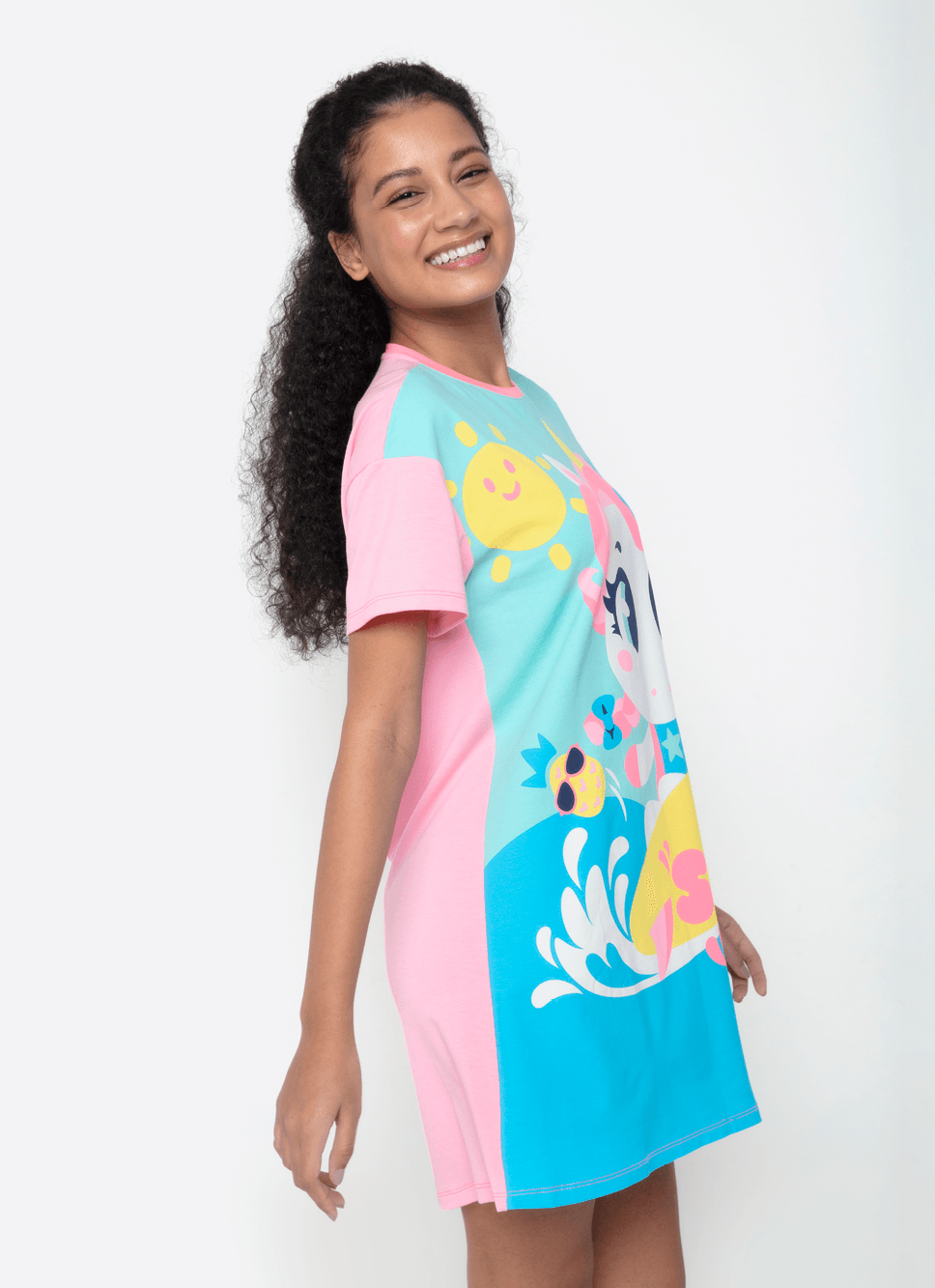 Camisola de viscolycra com estampa exclusiva e divertida de Uni Aloha A camisola da Puket proporciona conforto durante a vestibilidade, toque macio e ótimo caimento. Perfeita para noites tranquilas de sono e momentos de relaxamento em casa. Camisola de manga curta. Estampa frontal. Gola redonda. Tecido: Camisola lado frente (estampado) de viscolycra. Mangas, viés e costas: meia malha de poliéster com viscose e elastano. Cuidados: Lavagem à mão, não alvejar; não secar em tambor; não limpar a seco; secagem em varal por gotejamento a sombra; não passar ou utilizar vaporização; (mais informações, vide na etiqueta). Garantia: Deverá ser encaminhado dentro da embalagem original, sem indicações de uso, acompanhado de nota fiscal e com todos os itens constante na solicitação da compra.