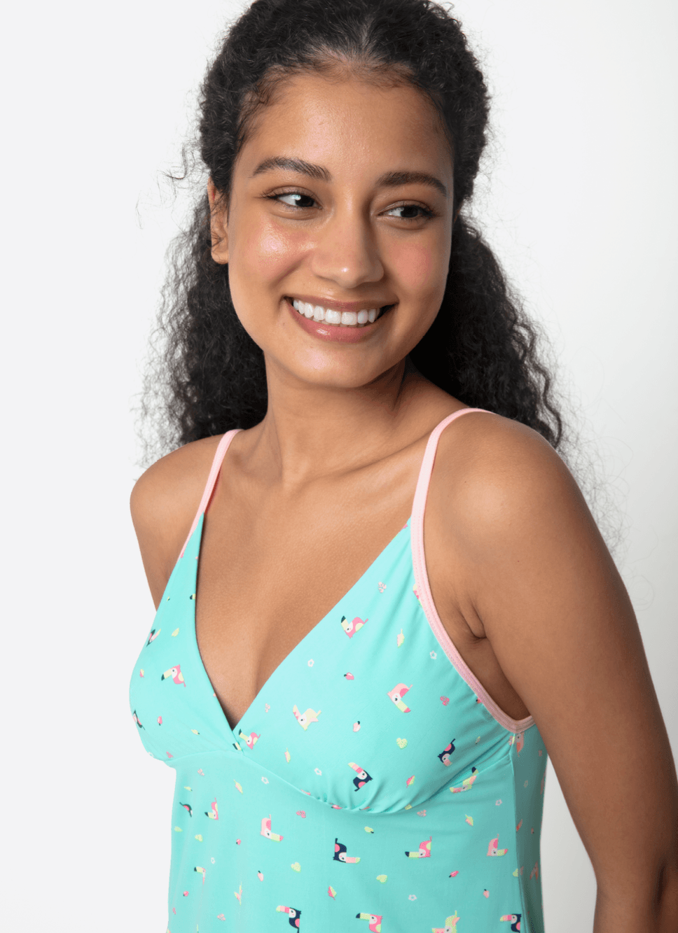 • Camisola Microfibra Adulto Tucano • Alça regulável • Tecido: Microfibra de poliamida • Toque geladinho • Estampa de tucano • Shorts com cós de elástico • Tecido Externo: 89% Poliamiada 11% Elastano • Modelagem com tecido duplo no busto • Como lavar e conservar bem meu produto: Lavagem a mão, Não alvejar, Não secar em tambor, Secagem em varal por gotejamento a sombra Não passar ou utilizar vaporização, Não limpar a seco, Não limpar a úmido • Garantia por defeito: Deverá ser encaminhado dentro da embalagem original; Sem indícios de uso; acompanhado de nota fiscal e com todos os itens constantes na solicitação de troca.