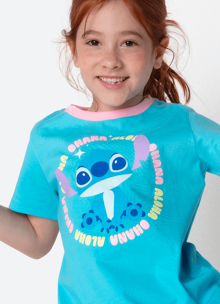 Pijama Manga Curta Algodão Menina Stitch