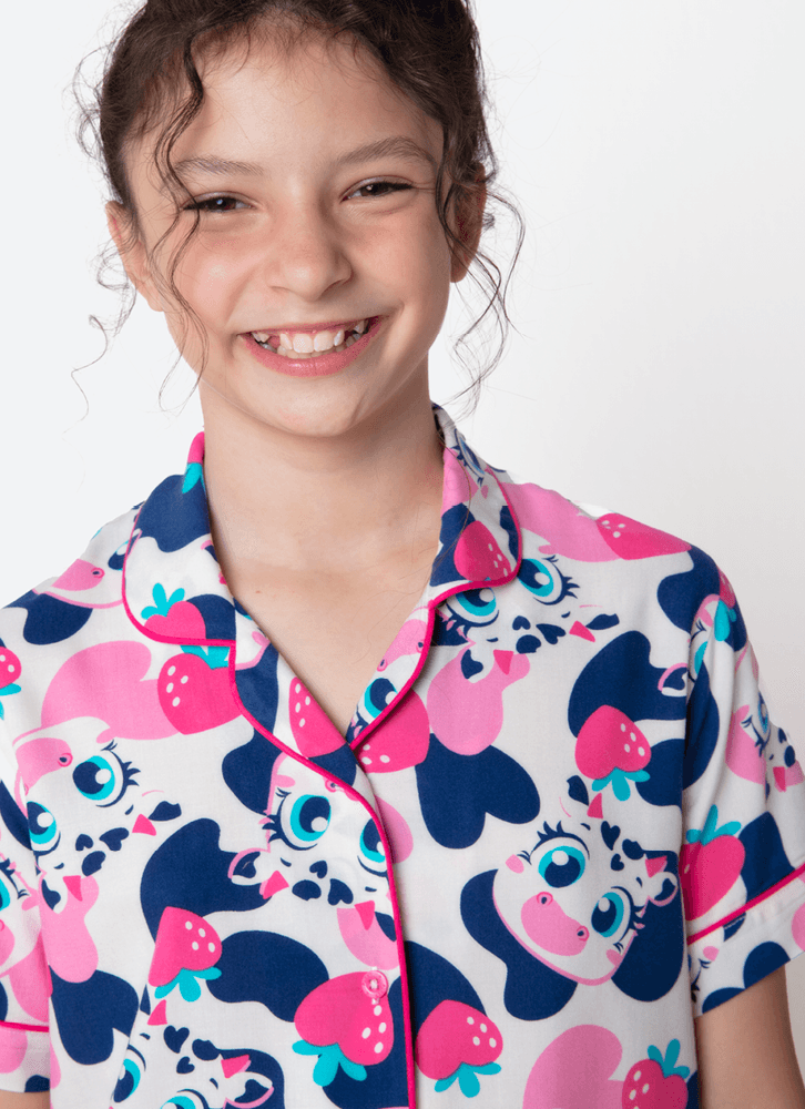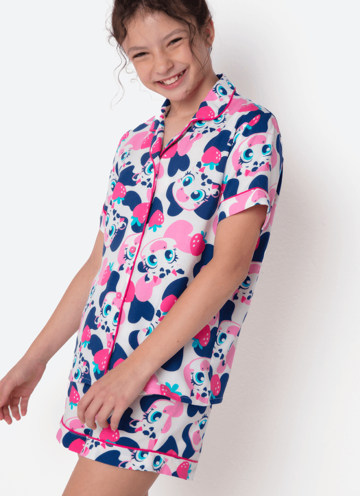 Pijama Manga Curta Viscose Menina Teen Vaca Romântica