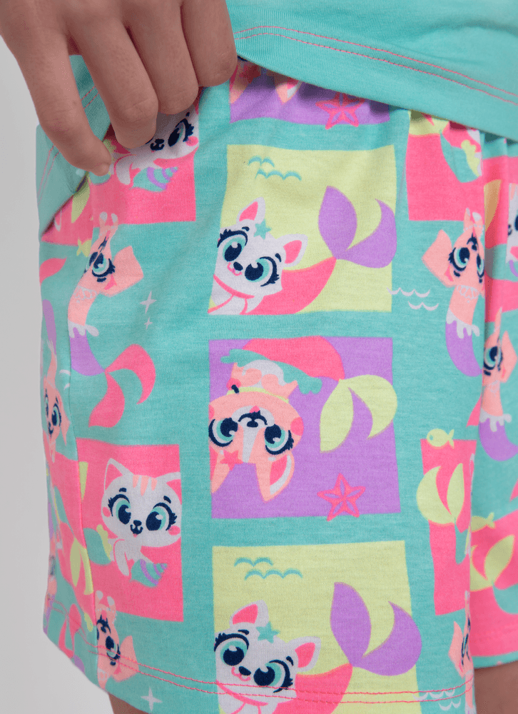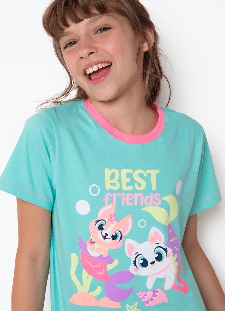 Pijama Manga Curta Algodão Menina Teen Pet Sereia
