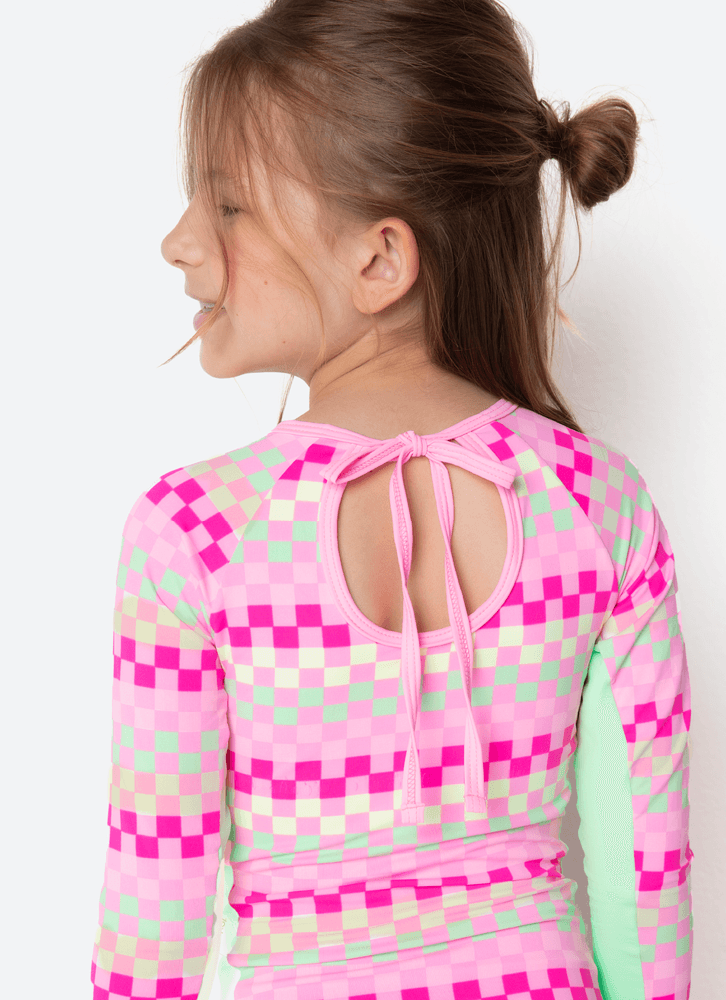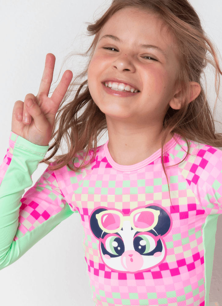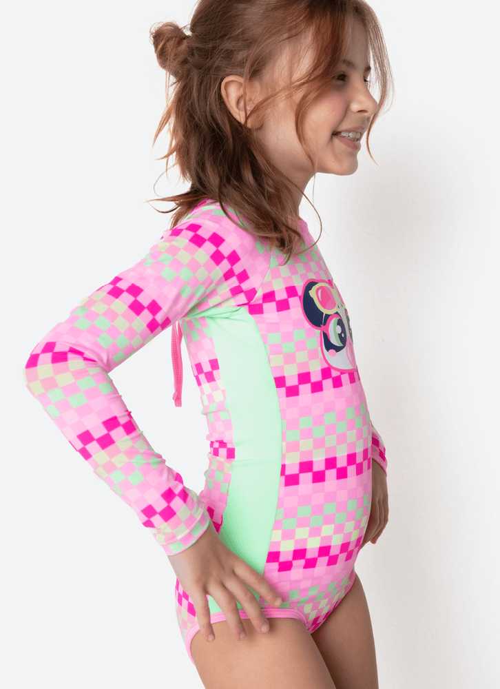 Descrição: Maiô manga longa em estampa corrida com recortes contrastantes nas laterais e estampa em silk localizado. Nome do Produto: Maiô Manga Longa Kids Panda Miami. Modelagem: Maiô manga longa raglan Estampa: estampa corrida - rotativa; silk localizado Tecido externo: 92% poliamida e 08% elastano. Tecido interno: 90% poliamida e 10% elastano. Ocasião de uso: Ideal para usar em clubes, academias, piscinas, praia. Grade: 1 / 2 / 4 / 6 / 8 - kids Diferencial do produto: maiô com recortes nas mangas e laterais, tecido com toque macio; produto altamente resistente ao cloro; proteção solar UV (não substitui o uso de filtro solar); conforto. Como lavar e conservar bem meu produto: Lavagem à mão, temperatura máxima de 40c; não alvejar / não branquear; não secar em tambor; secagem em varal; não passar; não limpar a seco, não remover manchas com solventes; não guarde a peça úmida ; não use amaciantes ou produtos com alvejantes a base de cloro; evite contato com superfícies ásperas ; cloro e bronzeadores podem manchar o produto; após o uso, enxague bem a peça com agua fria; a contínua exposição à luz forte e água clorada pode deteriorar alguns tipos de tecidos e cores. Garantia por defeito: Deverá ser encaminhado dentro da embalagem original; Sem indícios de uso; acompanhado de nota fiscal e com todos os itens constantes na solicitação de troca.
